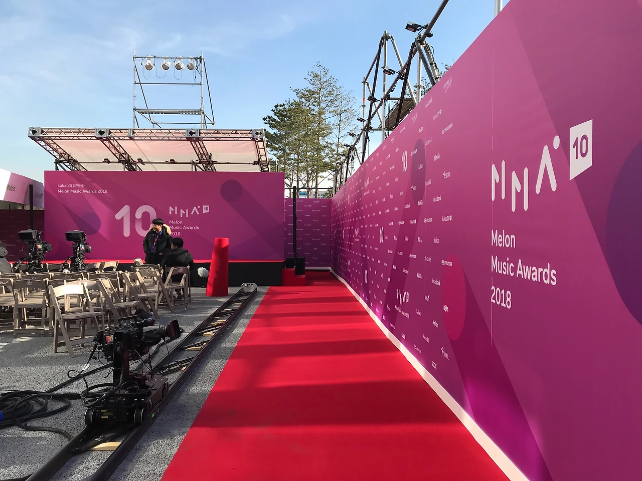 다양한 아티스트들이 입장하는 포토월과 공연장 안 현장 장식들은 어워드 무대 외에도 공연 중에 사용되는 큐카드와 시상 카드 그리고 트로피, 가림 현장 장식 등 다양한 곳에서 멜론과 MMA의 브랜드 아이덴티티를 반영하였습니다.