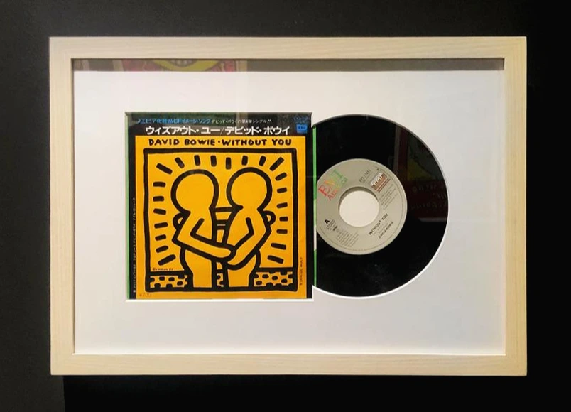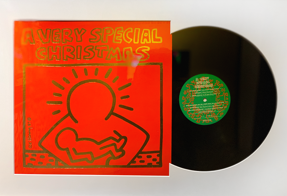 1982년 <랩 잇!>의 레코드 재킷 작업을 시작으로 수많은 뮤지션들의 앨범 커버를 제작했습니다. 1983년 발표한 말콤 맥라렌의 <굴을 위한 오리> 앨범은 해링의 그림으로 전부 채워져 있고, 같은 해 데이비드 보위의 <위드아웃 유> 커버 또한 해링의 앨범 커버 대표작 중의 하나입니다. 그레이스 존스와 마돈나 같은 뮤지션은 뮤직 비디오, 의상, 라이브 공연에서도 키스 해링과 함께 작업했습니다. 해링의 삶과 예술에 있어, 음악은 매우 중요했고, 그는 예술을 통해 소리와 메시지를 시각화한 예술가였습니다.