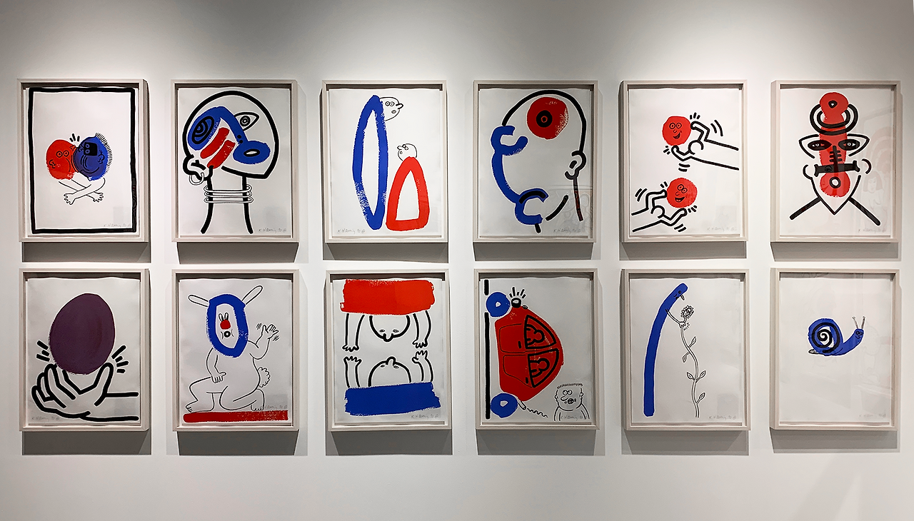 피라미드, 비행접시, 개, 뱀, 그리고 기어 다니는 아기가 사람, 동물, 외계 생명체 사이에 섞여서 돌아다니고 있는 작품들. 오늘날까지 해링을 떠오르게 만드는, 작업 초기에 만든 자신만의 상징적인 이미지들이 이 그림 속을 채우고 있습니다. 1990년, 세상을 떠나기 한 달 전, 해링은 자신의 작업 초기에 제작한 가장 순수한 형태들을 복제해 17개의 실크스크린 작품으로 구성된 포트폴리오 최종판을 제작했고, 여기에는 우리 사회의 어두운 면을 상징적인 형상과 장면으로 묘사해 만화 형태로 드러냈습니다.