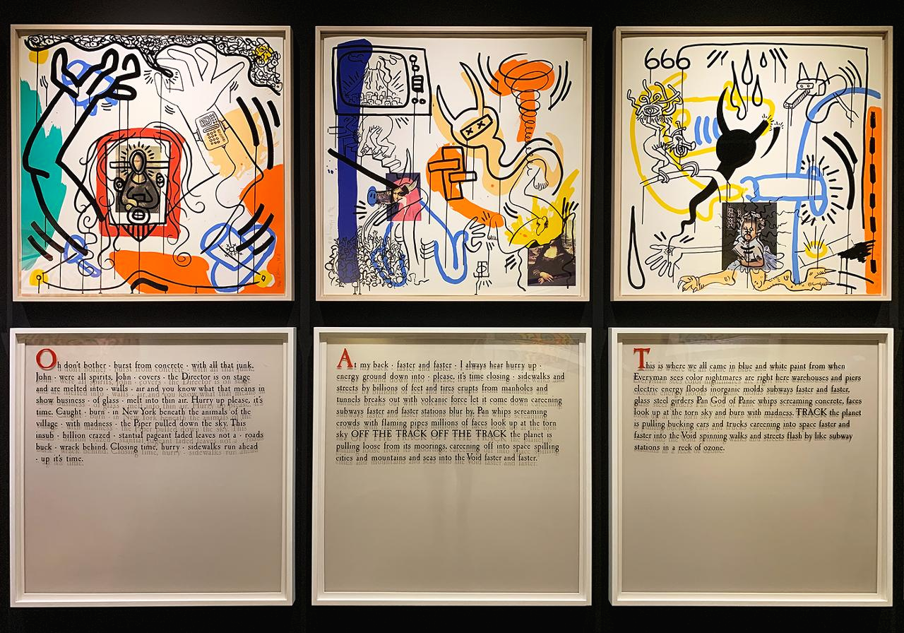 해링은 비트 세대의 대표 작가인 윌리엄 버로스와의 협업을 통해, 초현실주의 풍경화 속에 불길한 주제를 그려냈습니다. 그의 도발적인 그림은 정치적 견해를 초월하여 작품을 바라보는 사람들로 하여금 절망을 느끼게 하지만, 이를 통해 해링의 유머와 풍자 또한 느낄 수 있습니다. '종말'은 해링이 에이즈 진단을 받은 후에 만들어졌고, 그가 경험하고 상상하는 지옥을 조금이나마 엿볼 수 있는 작품이라고 할 수 있습니다.