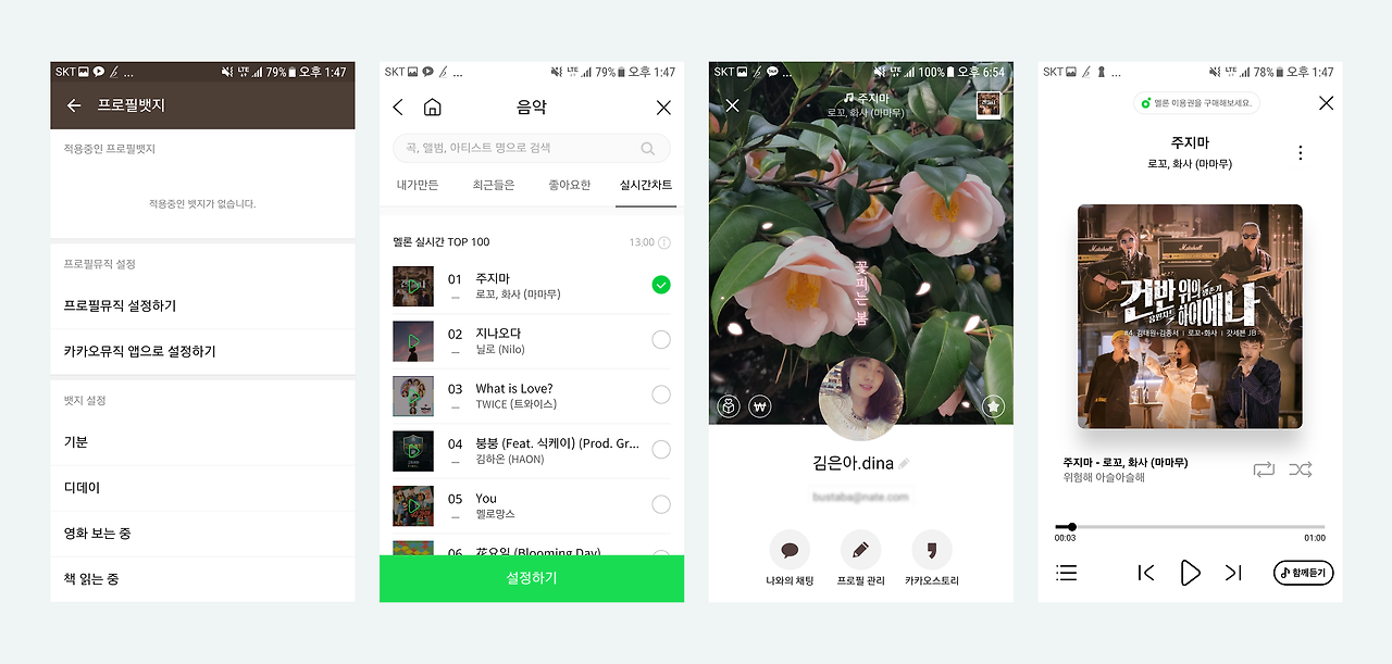 카카오톡에서 음악감상 / 프로필음악 설정 / 개인화 맞춤 음악추천 / 이용권선물하기