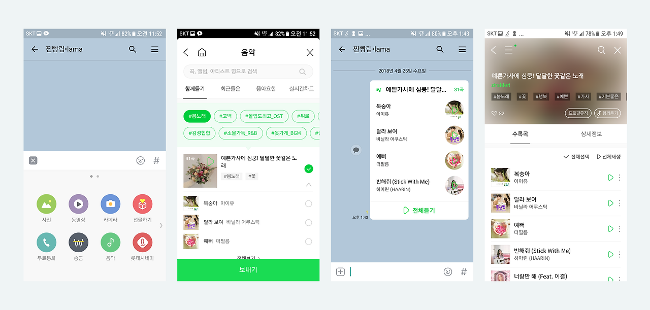 카카오멜론은 카카오와 멜론이 시너지를 내는 프로젝트로, 카카오톡 유저가 대화를 하면서 음악도 감상하고 또 친구와 함께 음악을 듣는 경험을 제공합니다. 그럼 카카오멜론 서비스가 어떻게 진행되었는지 그 과정을 설명해 드리려고 합니다.
