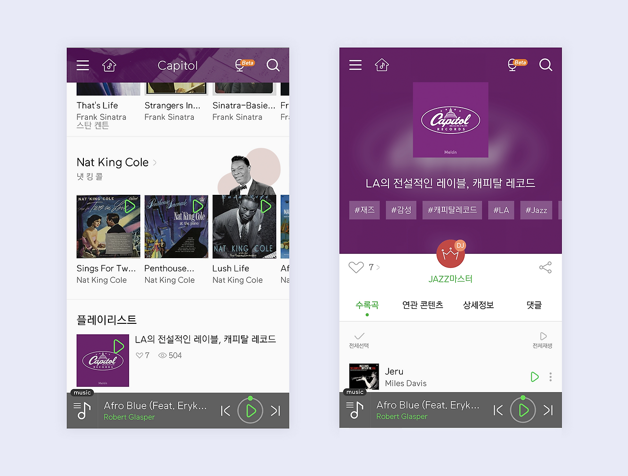 어떠셨나요? 만약 모르고 계셨다면 오늘부터라도 레이블 페이지에서 재즈를 마음껏 즐겨보시기 바랍니다. 그럼, 계속해서 멜론의 새로운 서비스와 디자인 소식으로 찾아오겠습니다.