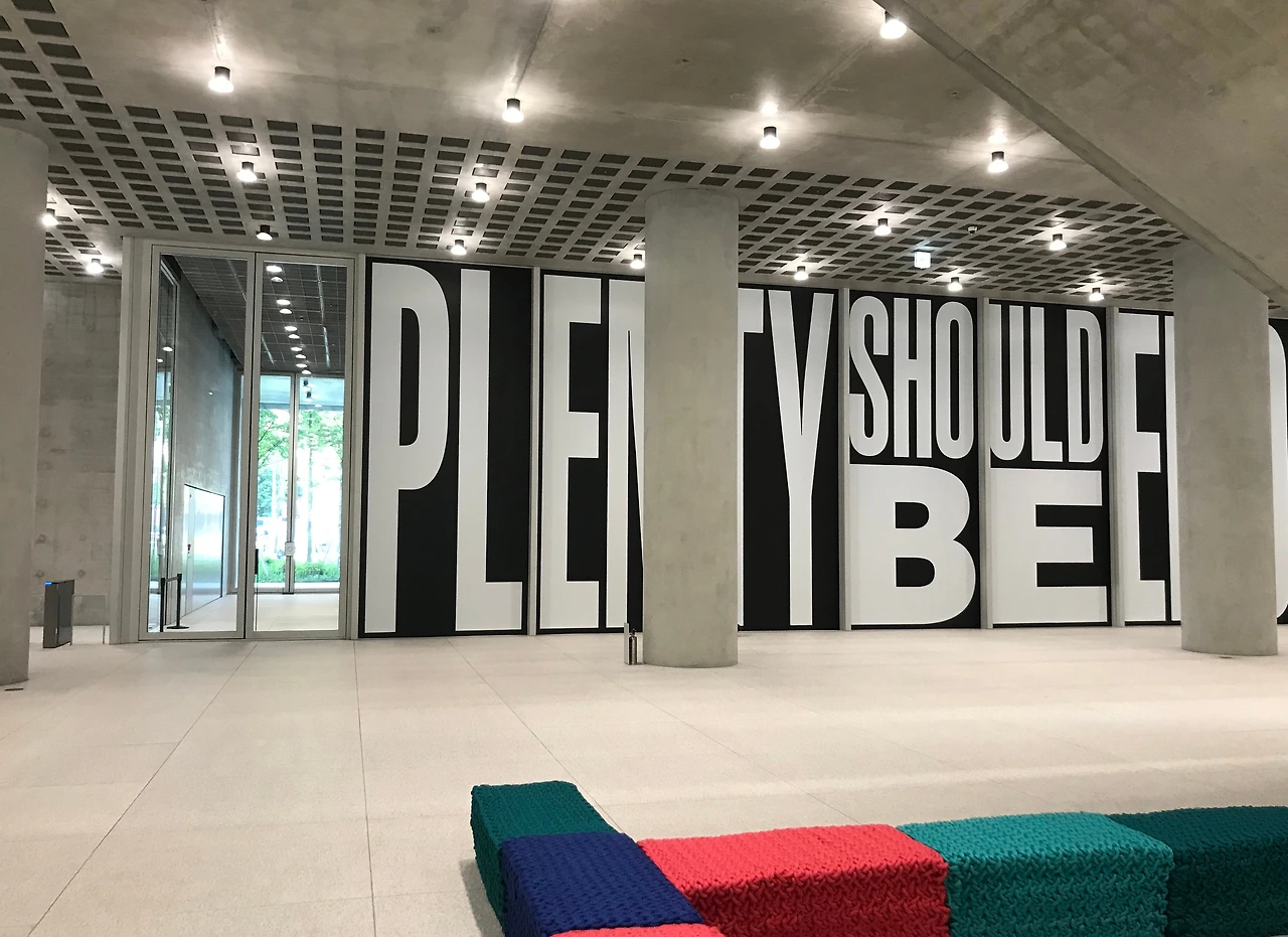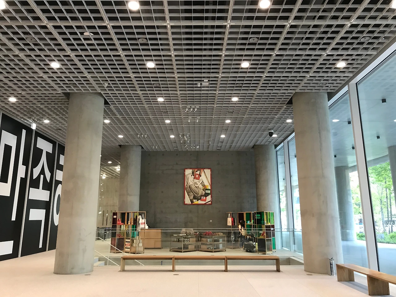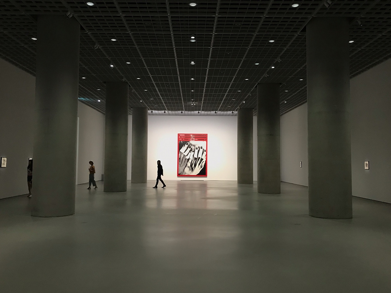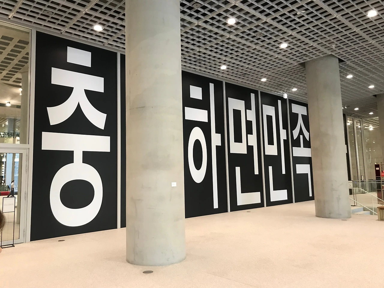 햇살이 따뜻한 오후, 현대 미술 거장 바바라 크루거(Barbara Kruger, 1945-)의 아시아 최초 개인전을 보러 아모레퍼시픽 본사로 향하였습니다. 전시를 진행하는 아모레퍼시픽 본사는 건축상을 휩쓴 명성답게 내부 곳곳을 구경하는 재미도 쏠쏠했습니다. 전체적으로 시원하고 넓은 공간에 심플한 심볼로 정리된 네비게이션 UI를 보며 화장실, 엘리베이터에서도 눈을 뗄 수 없을 정도로 그 크기와 간결한 디자인에 압도당했습니다.