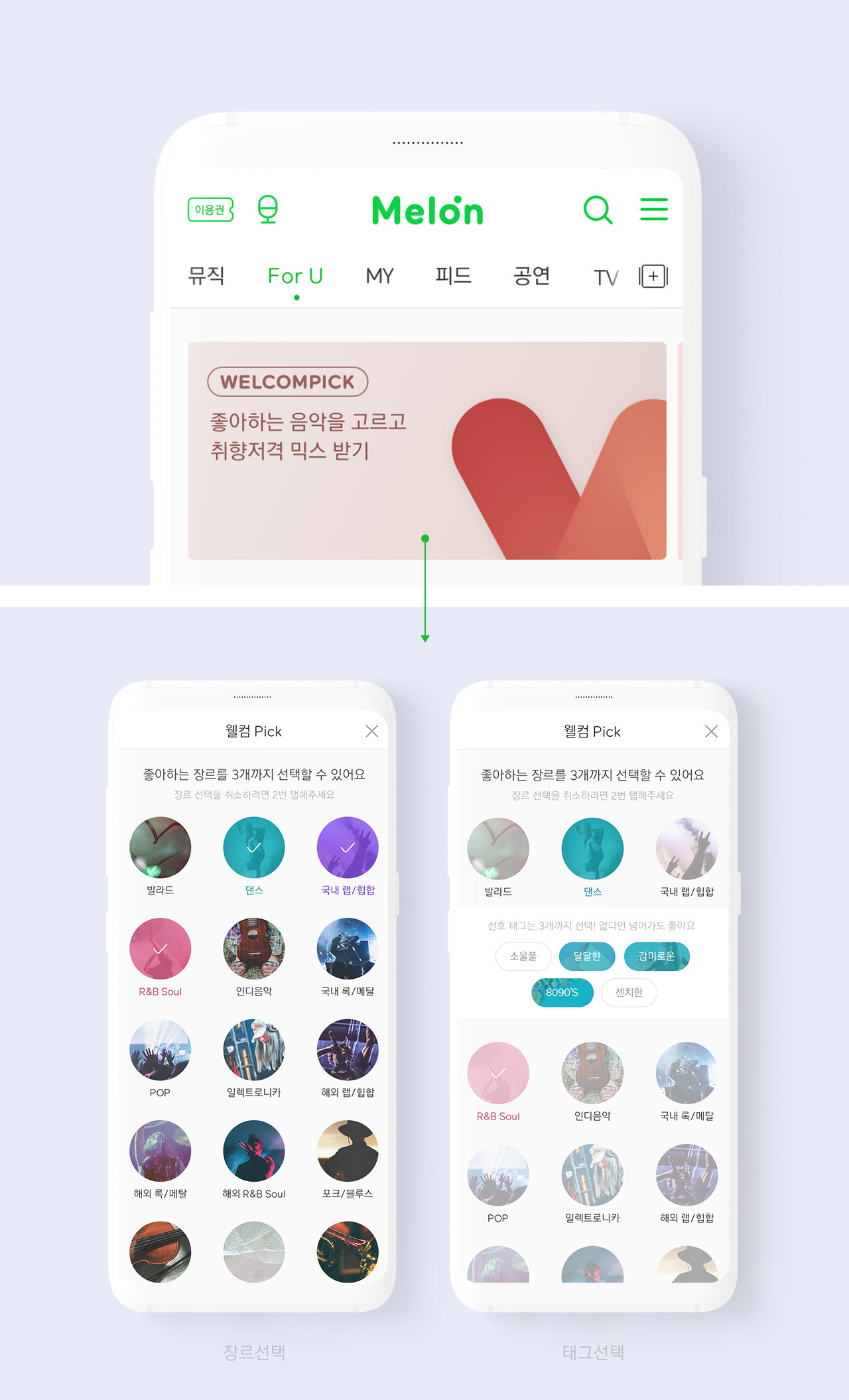 나에게 맞는 맞춤형 개인화 추천을 위해 관심음악 설정을 아주 심플하고 간편하게 개선하였습니다.