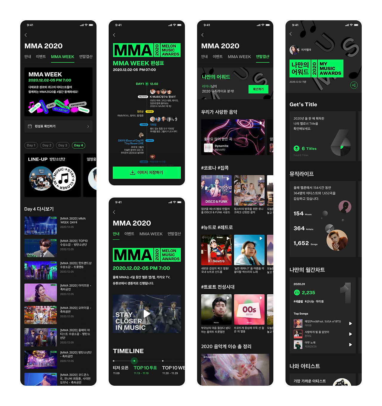 멜론 디자인팀에서 서비스 디자인 비하인드 스토리를 브런치로 생생하게 들려드립니다. 오늘은 그 첫 번째 시간, 최근 서비스 개편 후 성공적으로 행사를 마친 MMA 2020 온라인 디자인 이야기를 공유합니다.