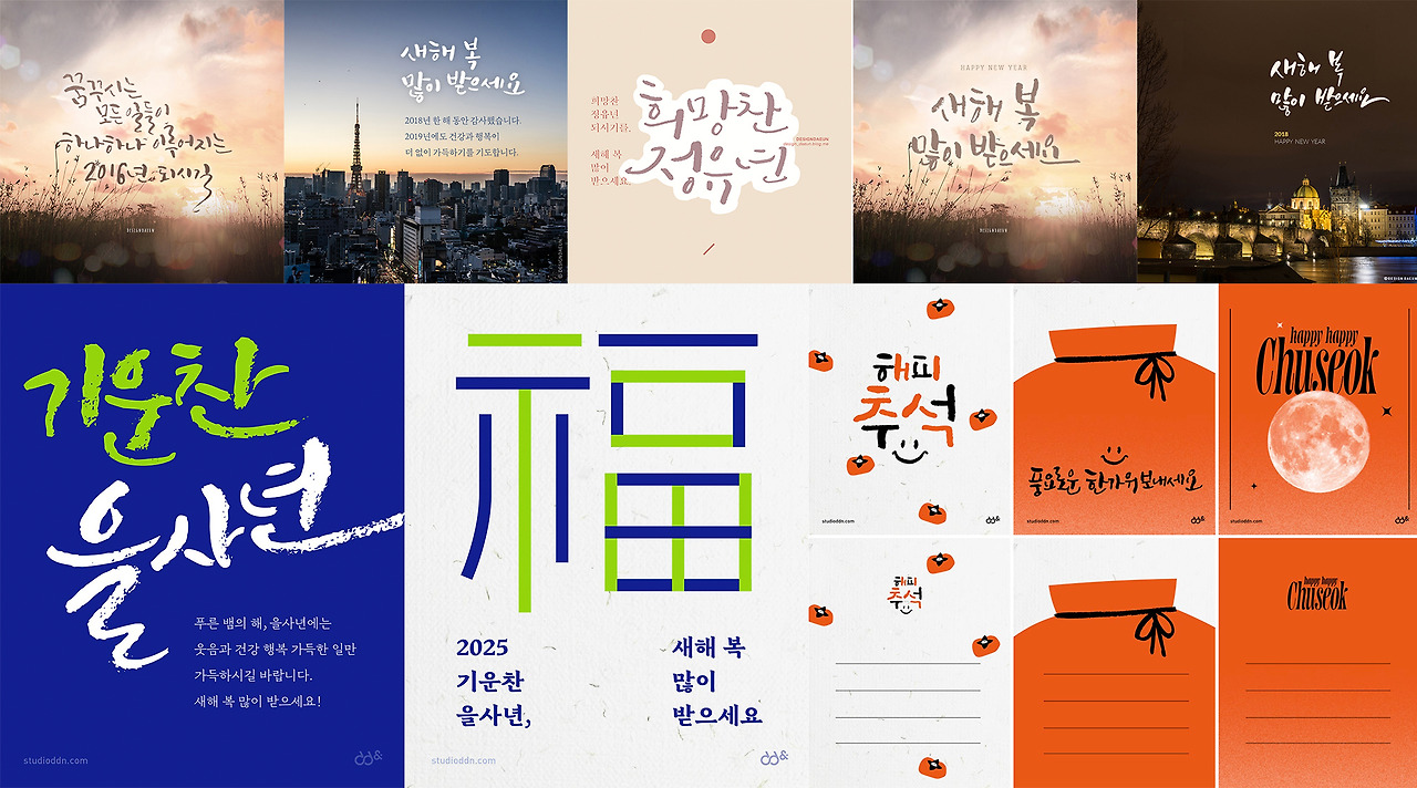 시즌별 이미지 작업은 간헐적이지만 이런저런 시도를 해볼 수 있을만한 디자인 작업 중 하나라고 생각합니다. 새해 인사말, 명절 인사말 등 온라인으로 가볍게 인사나누기 좋은 이미지 작업 같은 거요.