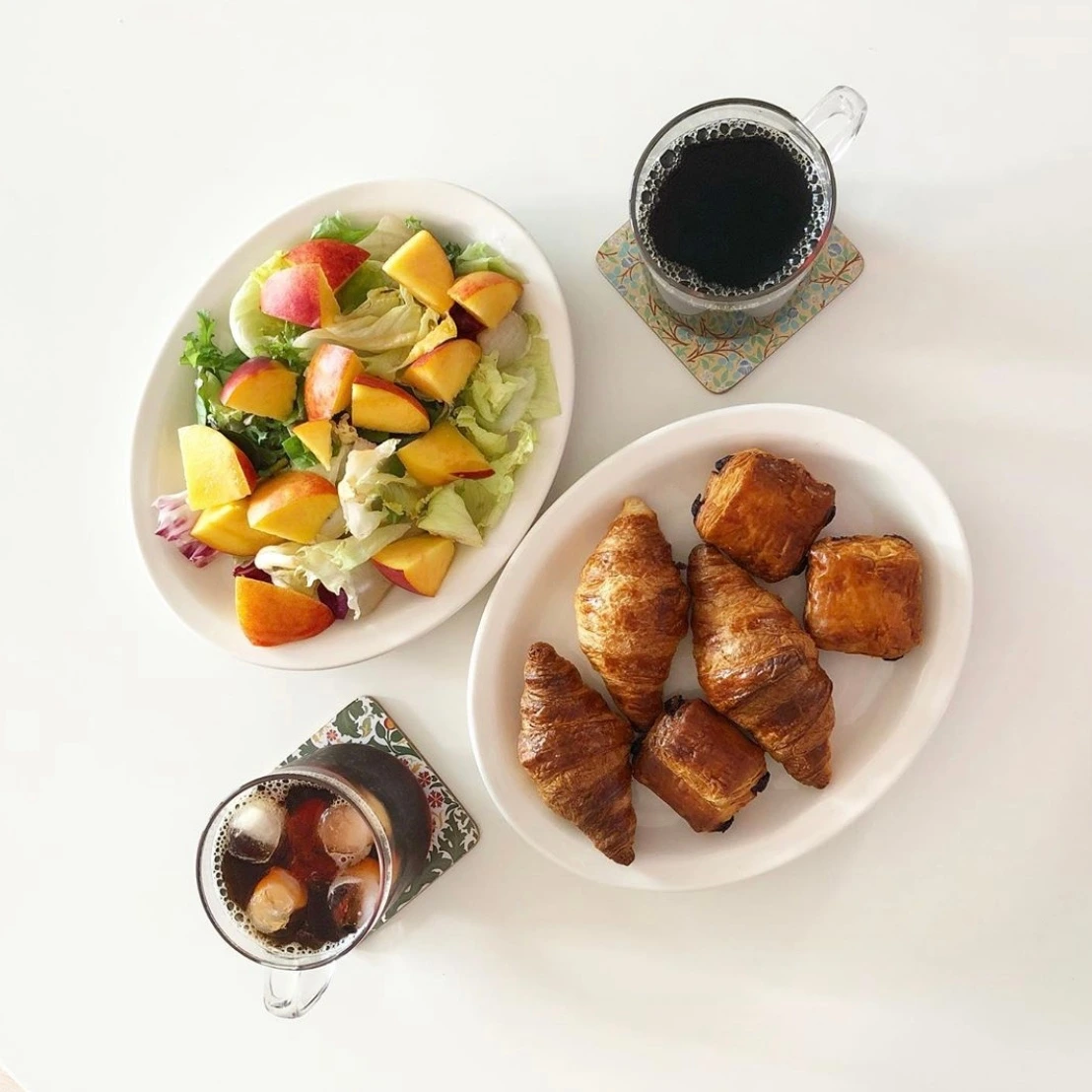 과일 혹은 샐러드와 함께 어느 날엔 베이글, 어느 날엔 프렌치토스트, 어느 날엔 크루아상. 거기에 핸드드립으로 내린 커피 한 잔이면 나름대로 근사한 아침 상차림이 완성된다. 사실 크게 보면 별로 달라지는 것 없는 보통의 서양식(?) 아침 메뉴지만, 나에게 가장 여유롭고 행복한 시간이다.