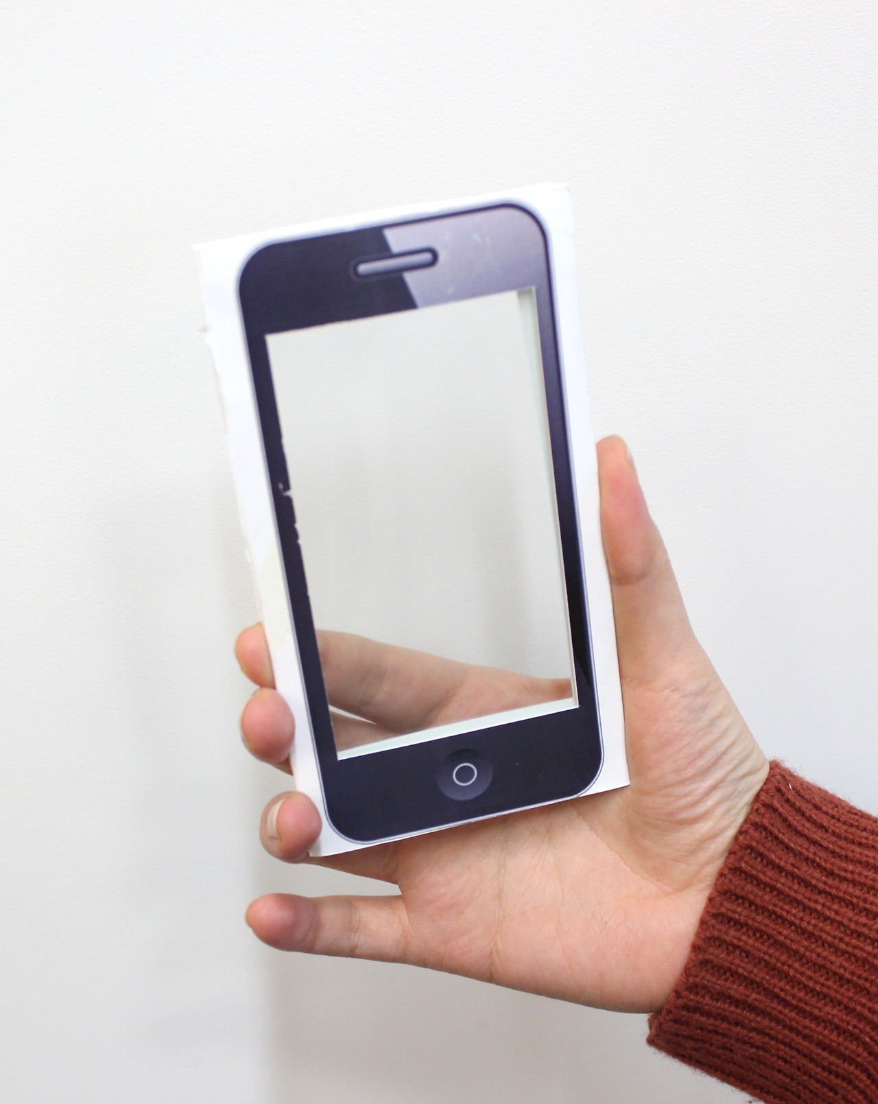 그리곤 핸드폰 모형을 프린트한 것을 잘라 샘플 하나를 만들어 보았다.