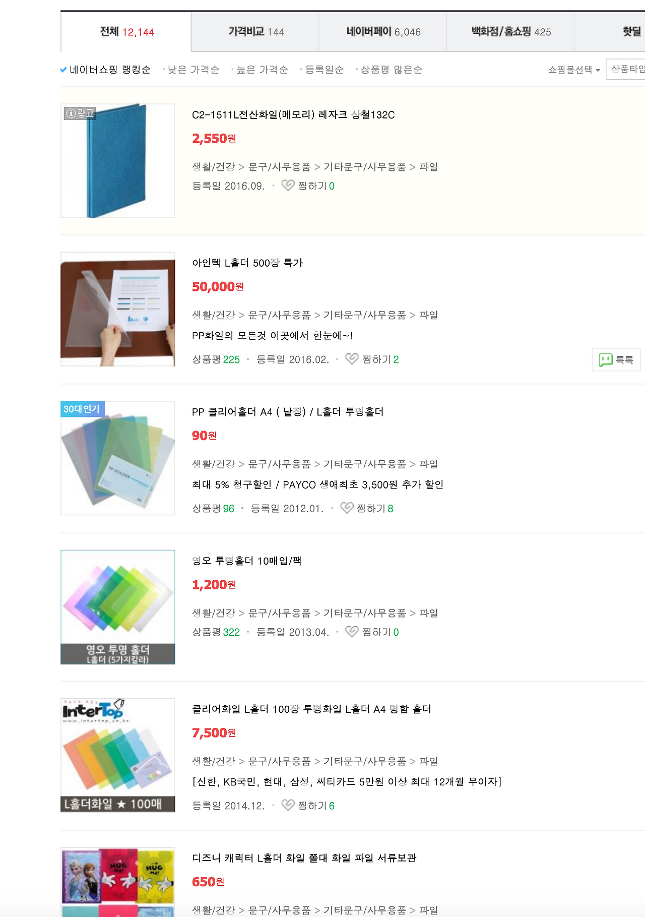 인터넷 쇼핑창에다가 '파일'이라고 검색해보았다. 수 많은 비슷비슷해보이는 아주 많~~~~은 파일들..