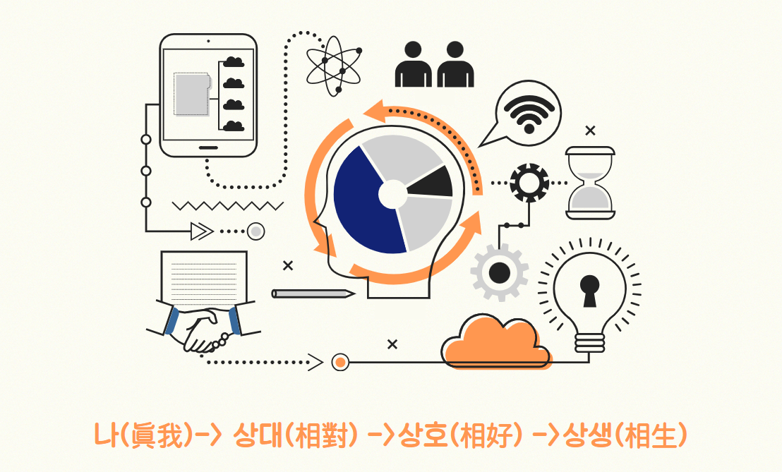 기획자는 '관계의 확장'을 통해 자신의 역할이나 영역을 넓혀가게 된다. 그리고 그 '관계의 확장'의 키워드는 '감동'이다. 진심, 진정성 등으로도 얘기할 수 있겠다. 그래서 내가 늘 던지는 질문이 있는데, 어떤 기획과 실행의 과정이든 우선은 '나 자신부터 감동시킬 수 있는가?'에 대한 답을 찾기 위해서다. 브랜딩 혹은 브랜드전략을 구체화하기 위한 기획은 나로부터 시작하여 상대, 그리고 더 나아가 상호적인 관계로 확장되며, 결국에는 상생하는 관계까지 이어지게 된다. 나(眞我) -> 상대(相對) ->상호(相好) ->상생(相生)