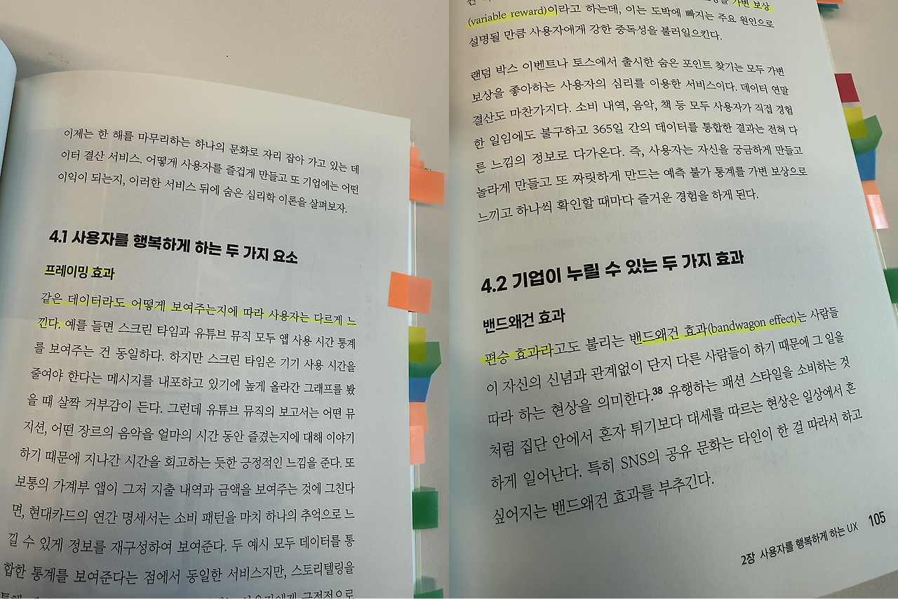 같은 데이터라도 ‘보여주는 방식’에 따라 감정이 달라집니다. 이것을 프레이밍 효과(framing effect)라고 합니다. 연말 결산 서비스들은 이를 활용해, SNS 공유형 콘텐츠로 확장되며 편승 효과(bandwagon effect)를 일으킵니다. 결국 사람은 단순한 숫자보단 주변의 ‘이야기’에 공감합니다.