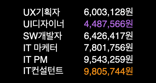 SW 기술자 노임단가를 보면 알겠지만, 디자이너의 평균임금이 가장 낮습니다. 하지만 다른 디자인 분야보다는 나은 편이에요. 출판/편집디자이너의 경우 신입 초봉은 일반적으로 2,600만 원에서 3,000만 원 사이에서 시작하는 경우가 많았고, 서비스/경험 디자인 분야의 평균 연봉은 3,000만 원 초반부터 시작하여, 4000만 원 미만까지 다양합니다.