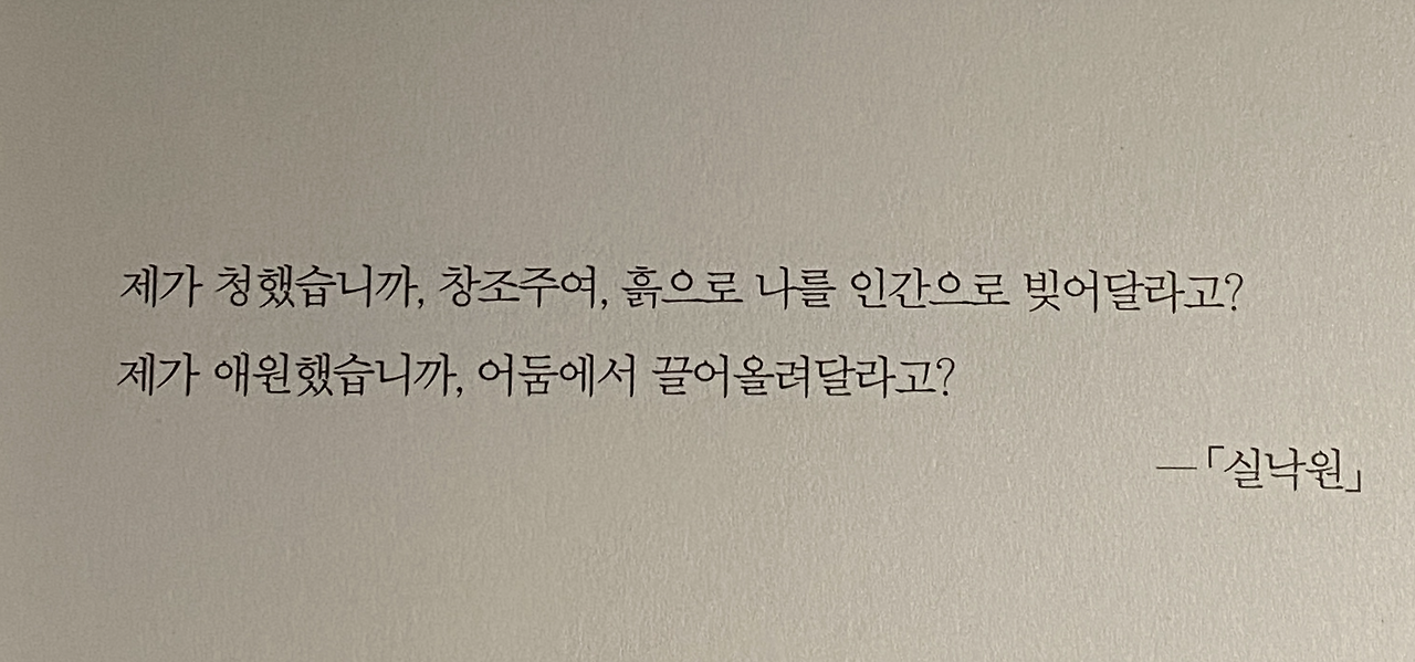 “제가 청했습니까, 창조주여. 흙으로 나를 인간으로 빚어달라고?