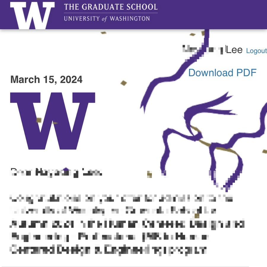 궁금해하시는 결과부터 말하면 University of Washington 의 Human Centered Design and Engineering (UW HCDE) 과에 합격했다. (CMU MDes는 waitlist를 받았다) 가장 목표로 했던 2곳 중 한 곳이고 학교 결정은 어떻게 했는지, 내 스펙은 어떻고, 어떤 식으로 준비했는지 소개해보려한다. 궁금하신건 언제든 답해드립니다.