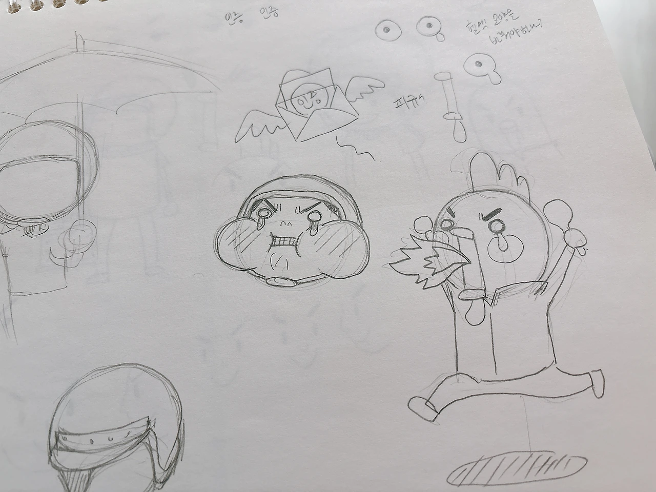 그리고 배달의민족 캐릭터 배달이 친구들이 확고하게 있다 보니 회사에서도 드로잉 실력을 많이 요구했다. 이러한 회사의 니즈와 나의 드로잉에 대한 애정이 겹치다 보니 더더욱 이 업무를 즐겁게 했던 것 같다. 물론 회사에서 마케팅 디자인 업무 외에 다른 곳에서도 배달이 캐릭터를 많이 사용하긴 했지만, 주로 배달이를 보여주는 필드는 배너나 이벤트 페이지 영역이었다. 그래서 마케팅 디자인에서 더더욱 직접 그린 배달이를 필요로 하는 경우가 많았다. 좋아하는 그림을 그리면서 페이지를 만들 수 있어! 병아리 디자이너였던 나에게는 이보다 더 매력적인 필드는 없었다.
