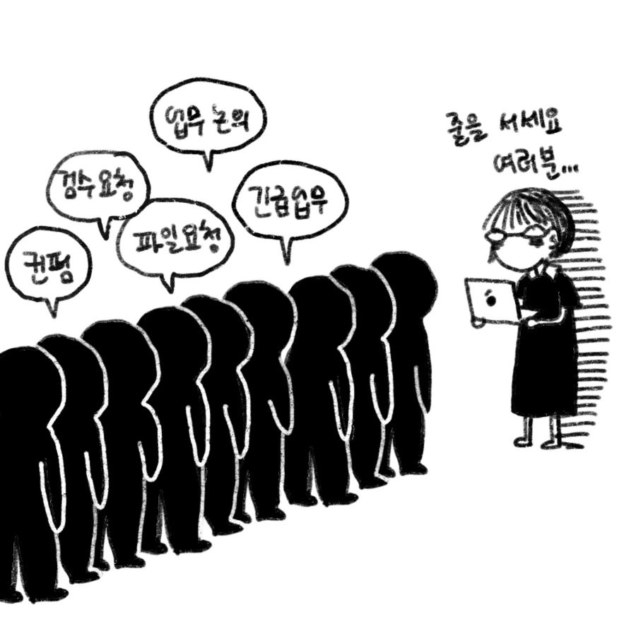 팀 내에서 나오는 산출물들의 퀄리티에 대한 검수도 디폴트 업무 중 하나였다. 마케팅 디자인을 하는 팀인 만큼 업무 속도는 빠르고, 그럼에도 불구하고 요구하는 퀄리티는 놓치면 안 되는 상황이라 매주 몰아치는 디자인 검수 모두 감당해 냈다. 모든 서비스의 업무 인수인계가 완료되지 않은 상황이라 지금과 비교하면 업무량이 적어서 다행이지 하반기에는…(말잇못)