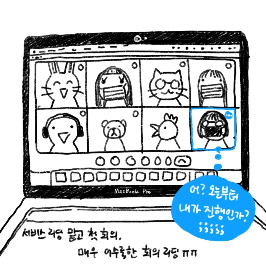 주니어 병아리 사이에 시니어가 혼자 있다는 것은, 주니어들이 모두 나한테 의지하고 있다는 것이다. 이전 같았으면 어떻게든 도망치고 싶어 했겠지만! 내가 본격적으로 총대매고 버팀목이 되어야 팀 안팎에 혼란이 생기지 않는다. 나는 M님과 조직 세팅과 어떻게 인수인계를 진행해야 할지 함께 고민했다.