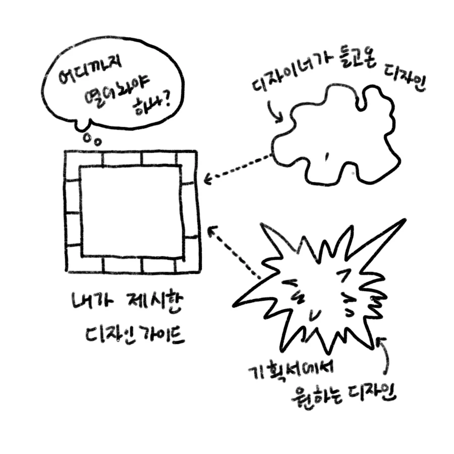 위의 말이 뭐냐 하면, 최근에 내가 담당하는 업무에서 제일 많이 한 말이다. 이전 글이 디자인 구성요소 정책 정하고 가이드 만드는 글이었는데 이렇게 가이드를 깨부수는 일을 얘기한다고?? 그러나 이렇게 가이드를 깨는 일은 정말 부지기수다. 그리고 나는 위의 문장을 슬프지만 이번주에 업데이트한 가이드를 배포한 지 며칠 만에 팀장님에게 말했다.