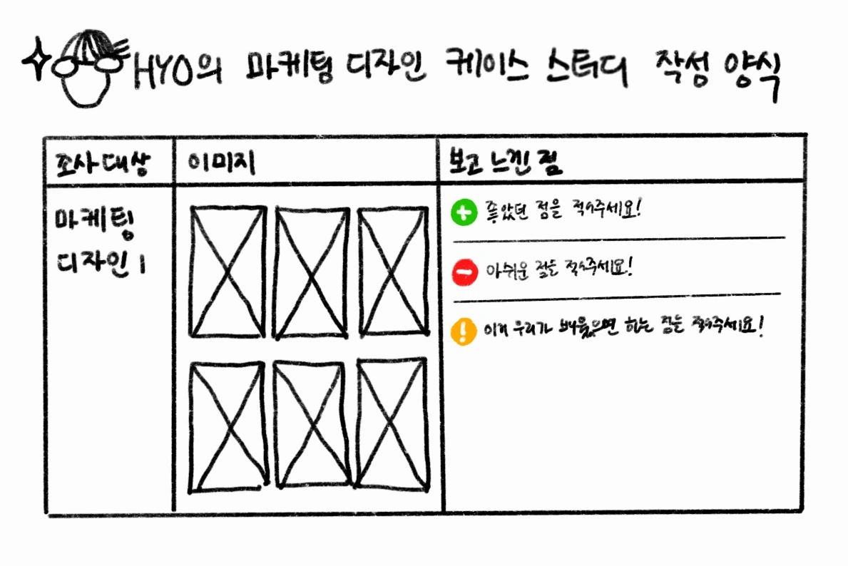 - 다른 서비스의 마케팅 디자인을 함께 보면서 어느 부분이 좋고 어느 부분이 안 좋은지 얘기해 보기