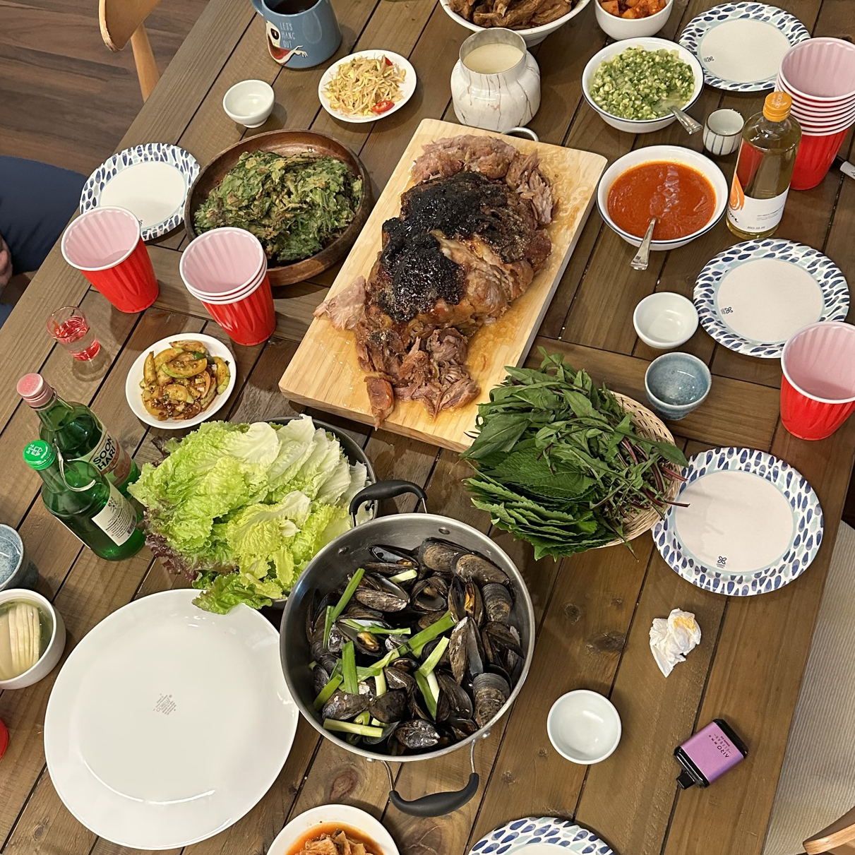 하지만 술을 만들면서, 막걸리와 어울리는 각종 음식과 반찬들, 먹을거리들도 많이 만들게 되었고, 몇 달에 한 번씩 친구들을 집에 잔뜩 불러놓고 막걸리 테이스팅 비슷한 행사를 한 번씩 하면 그것처럼 행복한 일이 없다. 한 번은 막걸리 테이스팅이라는 주제를 가지고 집에서 디너파티를 열었다. 원래는 친한 친구 다섯 명이서 가볍게 하려던 이벤트였는데, 친구의 친구와 코워커들한테 까지 소문이 나서 열세명의 사람들이 우리 집을 찾아왔다. 직접 빚은 일곱 가지 종류의 막걸리를 친구들에게 하나하나 설명을 하고, 막걸리를 곁들일 안주로는 보쌈과 부추전, 홍합탕, 닭갈비찜, 집에서 직접 담근 김치와 동치미 등을 내어놓았다. 아주 클래식한 한국식 식단에 살짝 색다른 보쌈 고기를 선보였다. 손님들의 반응은 폭발적이었고, 그날 저녁 행사에 감동받은 손님들이 이제는 매달 돌아가며 디너파티를 하는 나름의 전통도 생겼다. 요즘에는 입 소문이 나서 나름 귀여운 스케일의 장사(?)도 하고 있다. 부엌을 고치러 왔던 컨트랙터 한분은 내 흑미 막걸리를 맛보시더니 자기네 집에서 병을 가져와서 20불을 내고 한 병 사가셨고, 농장을 운영하시는 내 예전 회사 보스는 닭장에서 갓 꺼내 온 달걀 몇 판과 막걸리 한 병을 교환하자며 물물교환도 성사되었다. 이 모든 게 너무 즐거울 뿐이다.