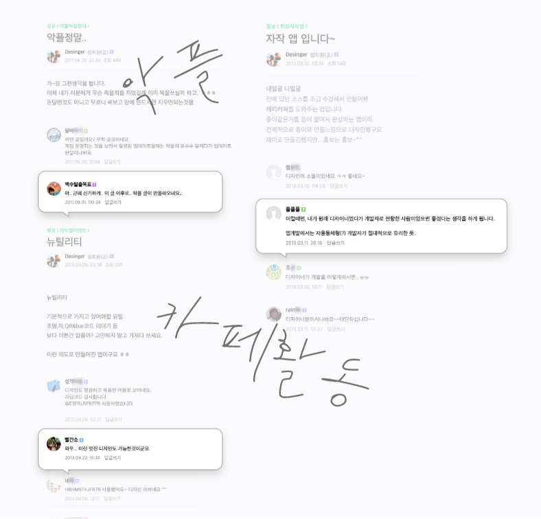 그리고 특이한 경험을 했는데, 몇 가지 앱이 순위권에 오르다 보니 사용자들의 답글이 달리기 시작했어요. 처음 들어보는 욕부터 칭찬까지 정말 다양하게 들을 수 있었죠.