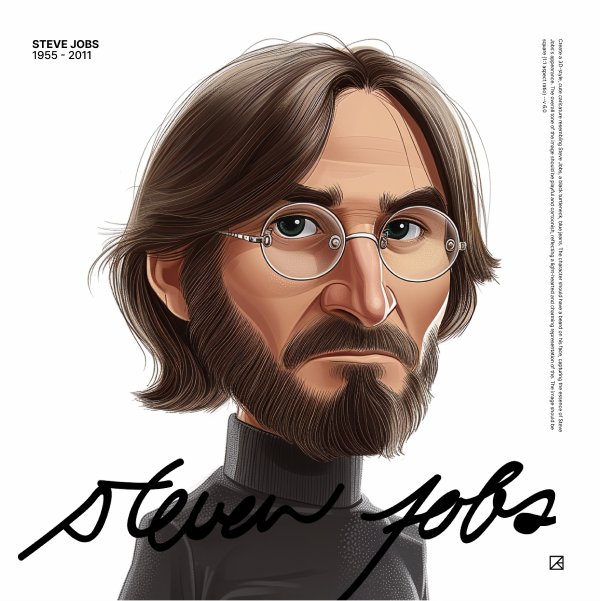 스티브 잡스의 경우, 프롬프트에 이름을 입력하면 초상권 이슈로 인해 캐릭터 생성이 어렵다는 메시지가 나왔습니다.(음… 철저하군요 ㅎ..) 그래서 이름이 아닌 애플의 창업자(요건 되네요?ㅎ) 프롬프트와 머리스타일, 안경, 청바지, 검은색 셔츠등의 외형적 특징을 구체적으로 입력하여 캐릭터를 생성할 수 있었습니다.