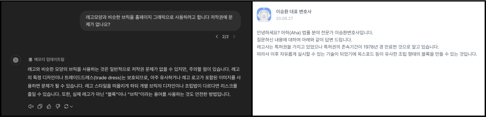 첫 번째로 검토한 것은 레고 블록 형태의 상업적 사용이 가능 여부였습니다. 다행히 ‘레고’라는 단어나
