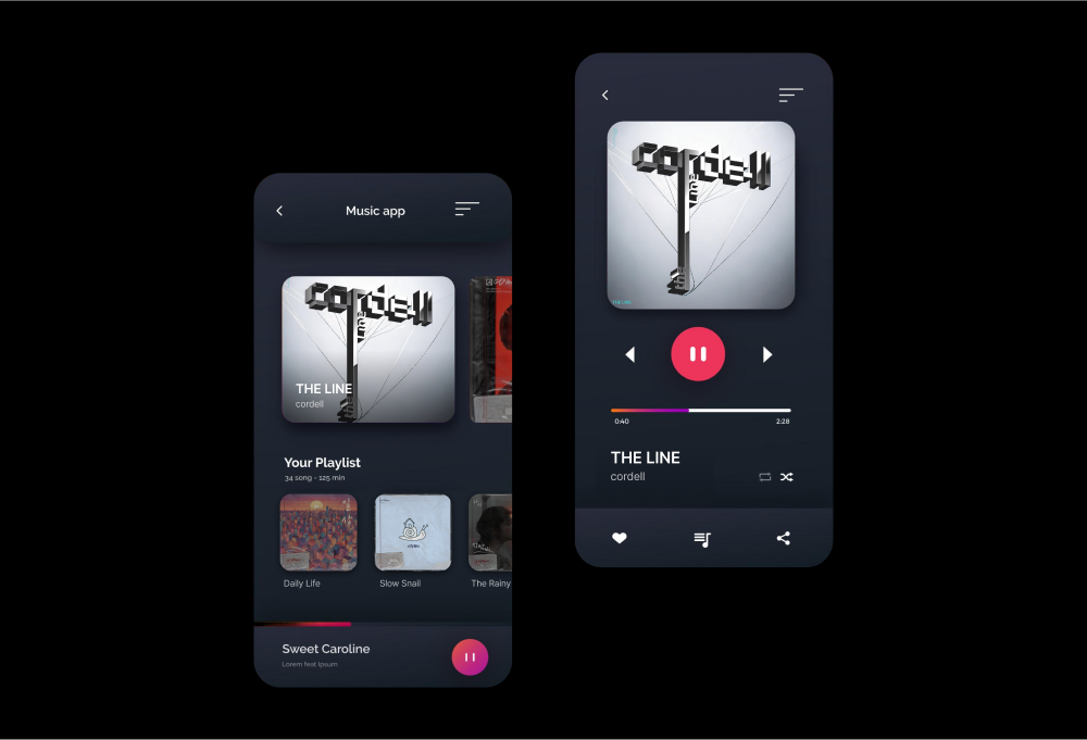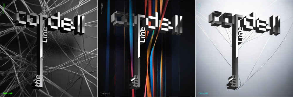 원하는 방향은 이전에 만든 로고와 앨범 제목인 The Line을 결합하여 입체감 있는 아트워크를 원하셨습니다. 그래서 기본 형태를 만들기 위해, 먼저 로고와 앨범 제목에 어울리도록 긴 라인을 활용하였고 다양한 폰트를 테스트하여 베이스 디자인을 하였습니다.