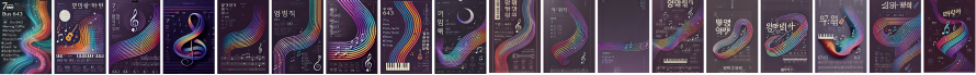 이미지를 생성하고 포스터 디자인을 구성하면서, 오선지 위에 사연 내용의 오브젝트를 녹여 넣을지, 아니면 음악 공연에 중점을 둘지 고민이 있었습니다. 그래서 처음에는 이 두가지 가지 방향으로 포스터를 제작해보았습니다.