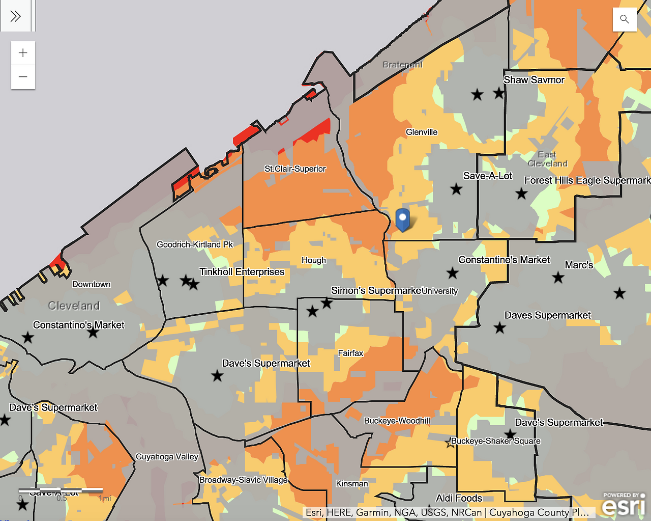 이번에는 현재 거주하고 하고 있는 클리블랜드의 푸드 사막 지도를 찾아봤다.