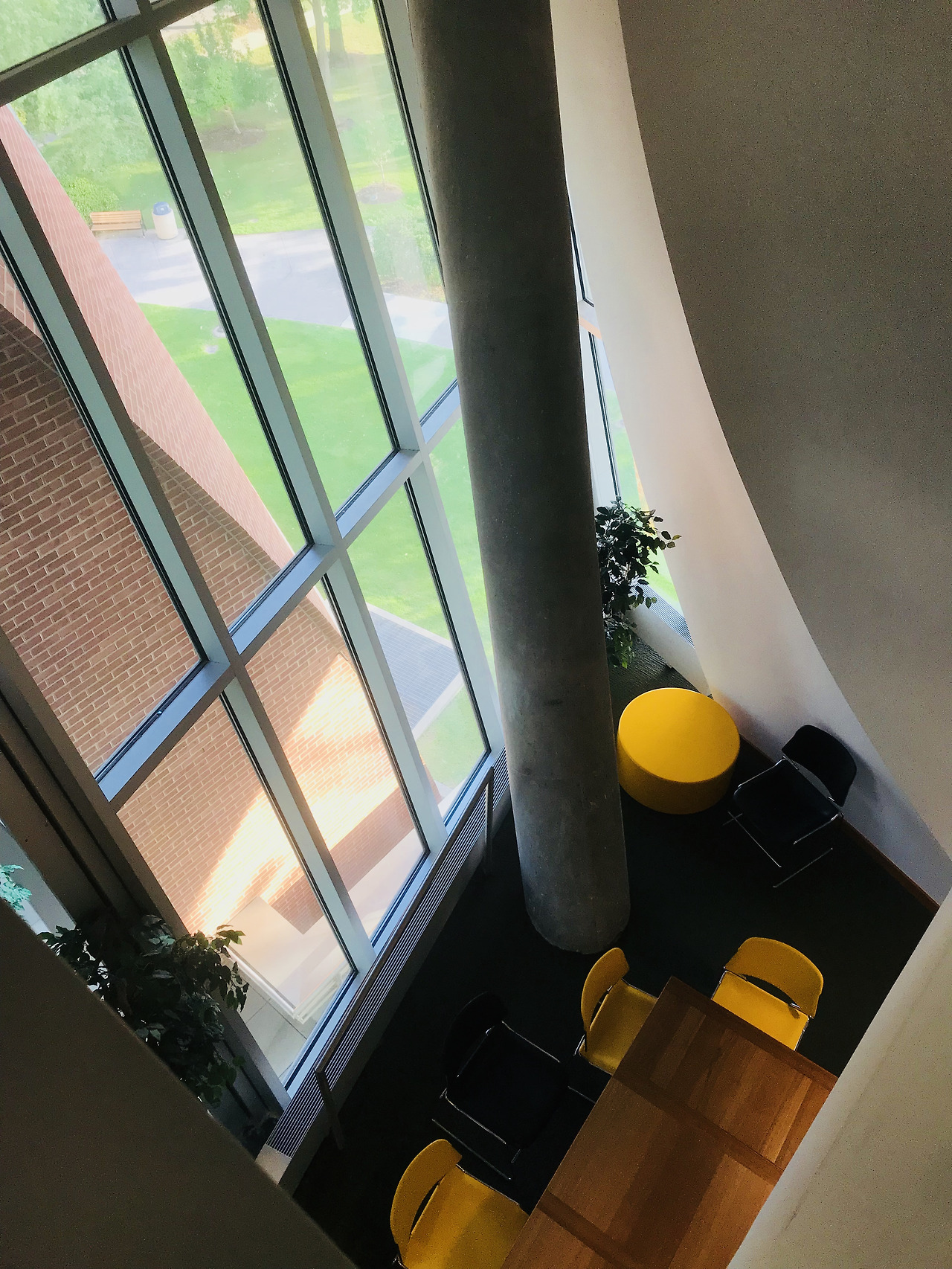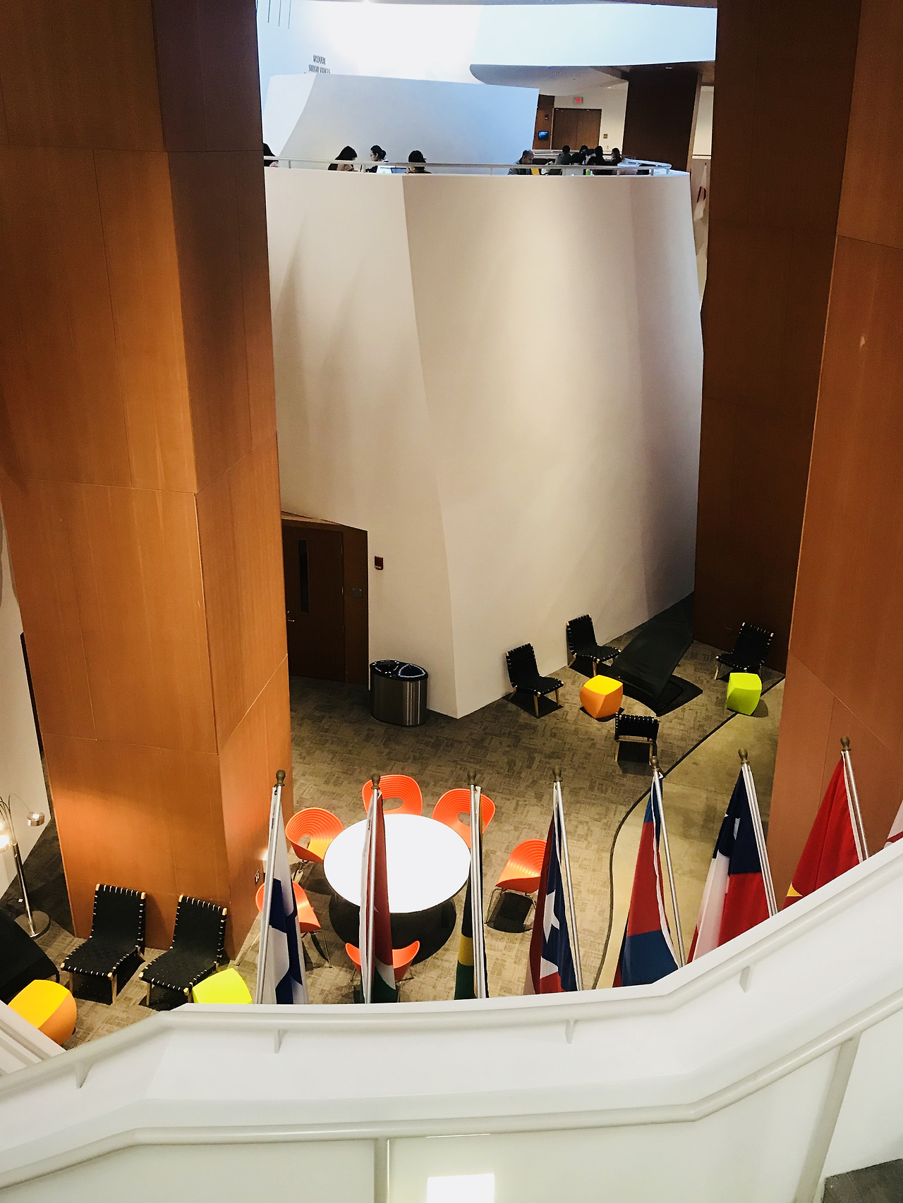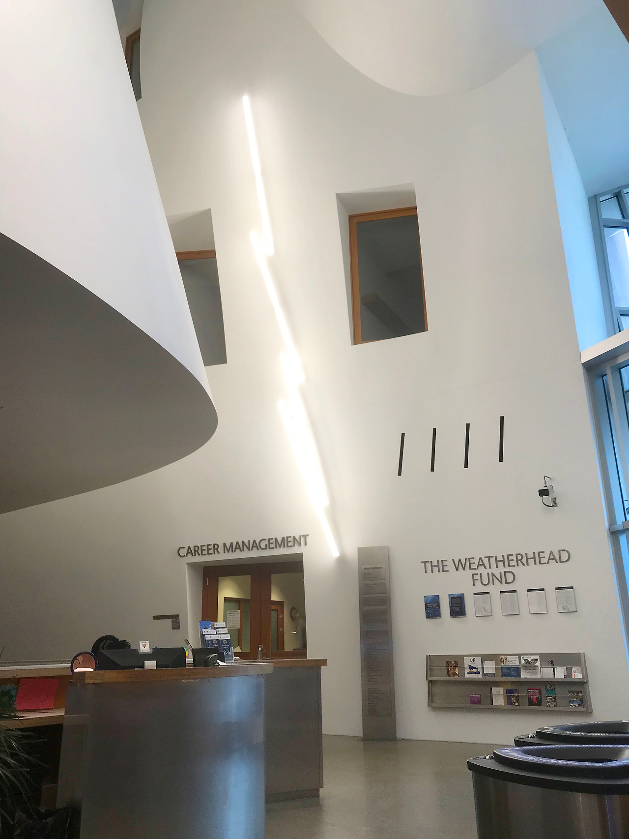 지나다니면서 건물을 볼 때마다 내부가 궁금하긴 했는데, 당연히 출입증이 필요하리라 예상하고 문을 밀어볼 생각조차 하지 않았다. (여행을 하면서 대학을 방문해보는 게 하나의 취미인데, 샌프란시스코나 뉴욕, 런던같이 대도시에 있는 곳은 대부분은 출입증이 있어야 들어갈 수 있다는 걸 익히 알고 있기에 들어가 보려는 생각조차 하지 않았던 것이다.) 그런데 오늘은 친구가 들어가 보자며 유리 문을 밀자 문은 바로 열렸고, 아무도 우리한테 관심이 없었다.