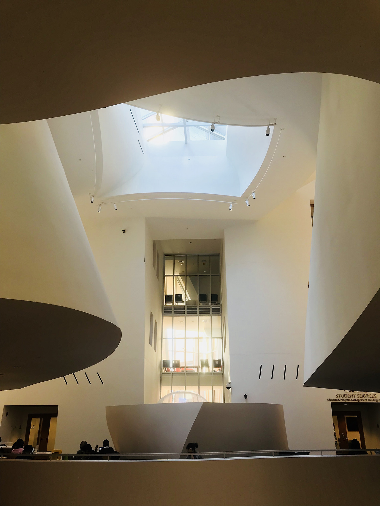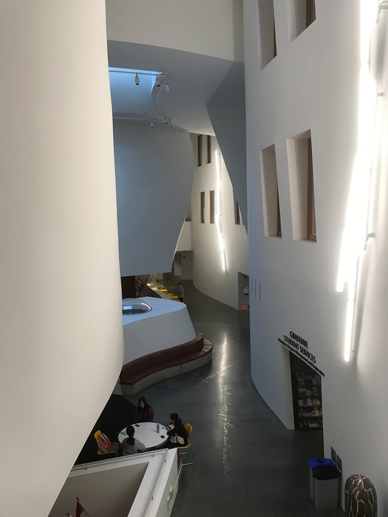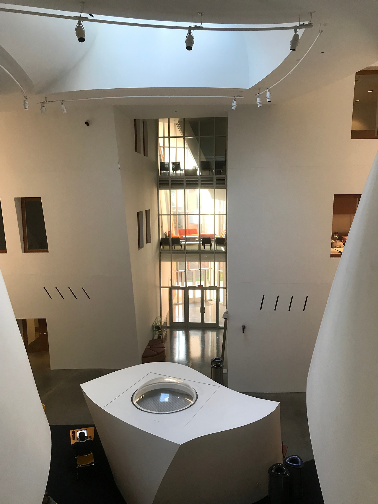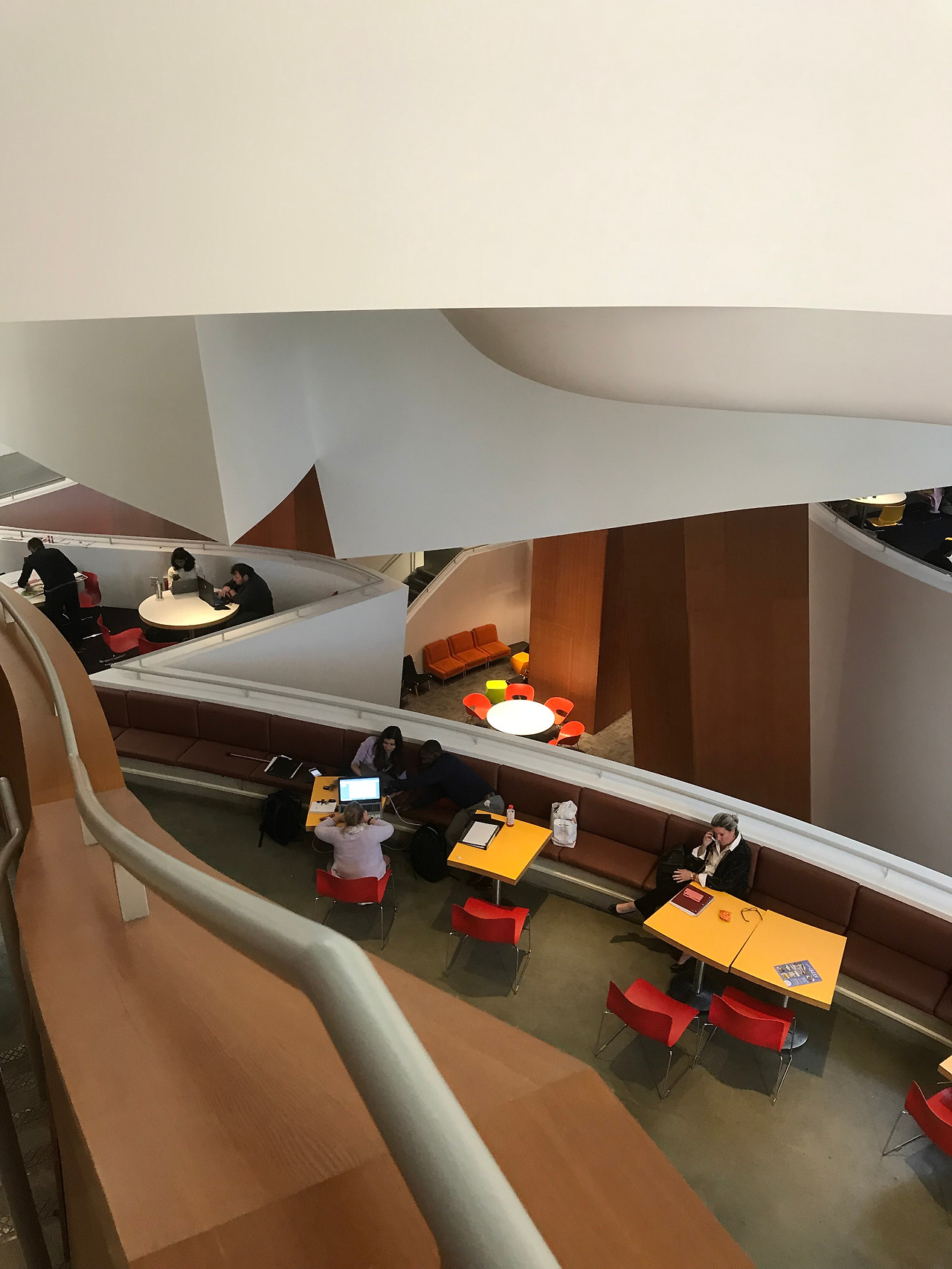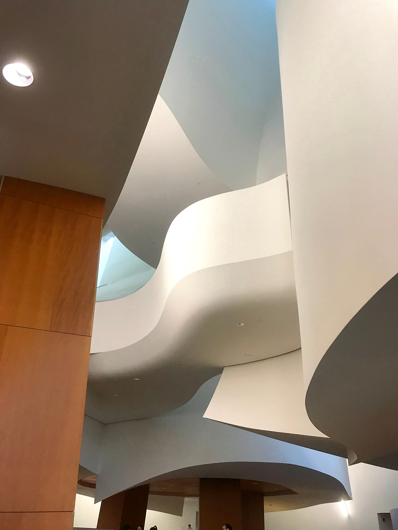 조금 더 걸어가다 보면, 유명한 건축가 프랭크 게리(Frank Gehry)의 느낌이 물씬 느껴지는 건물이 있다. 지나칠 때마다 궁금해하면서도 들어가서 확인을 해봐야겠다는 생각을 해보진 못했는데, 앞의 경험이 있으니 이번엔 망설이지 않고 문을 밀었다. (이번에도 문은 한 번에 열렸다. 역시 아무도 우리한테 관심이 없었다.)