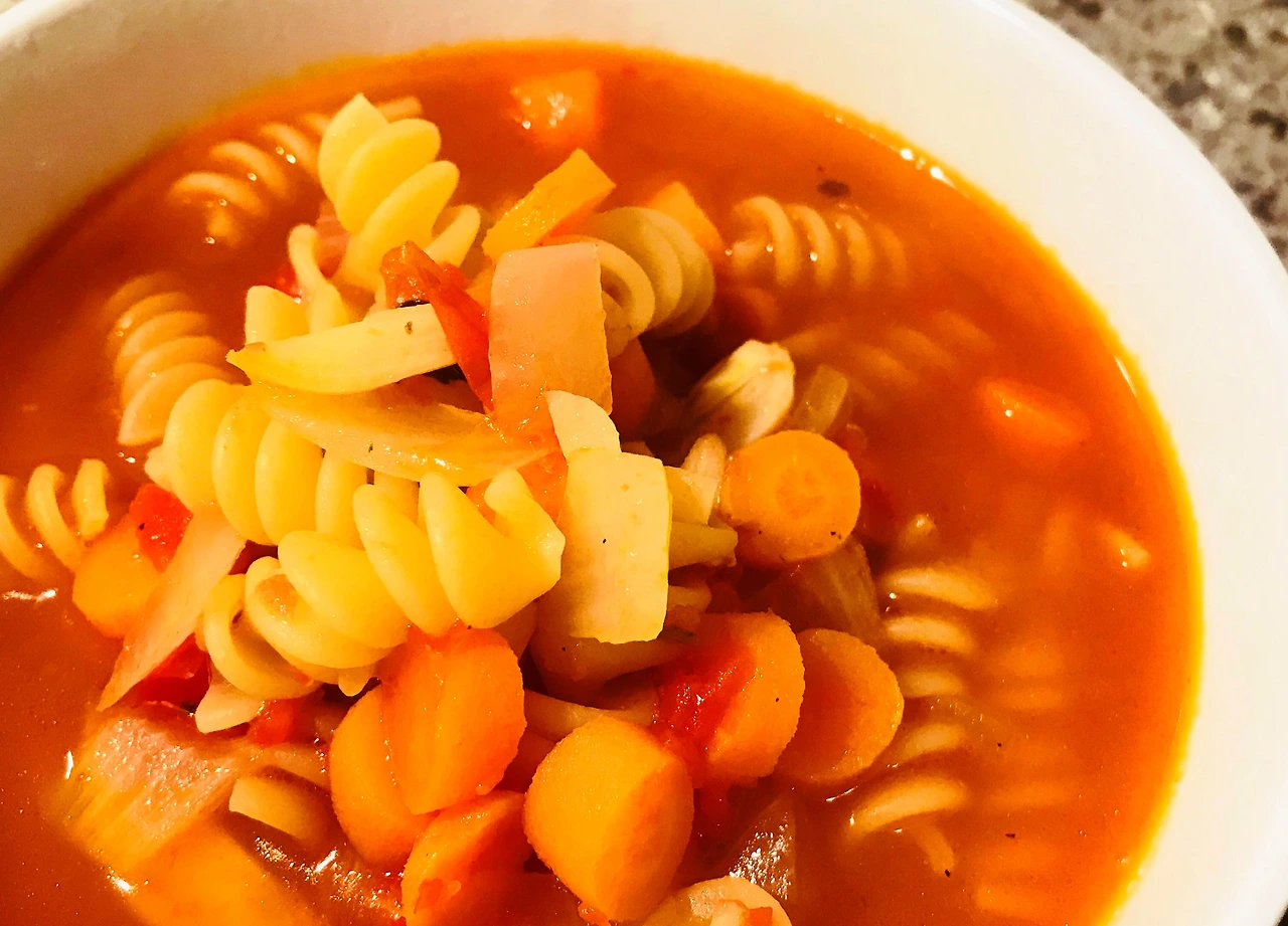 저녁을 해 먹겠다고 피곤한 몸을 일으켰다. 비가 와서 그런지 따뜻한 국물이 생각나서 수프를 끓이기 시작했다. 올리브 유에 마늘을 넣어 향을 내고 당근, 양파, 토마토 넣고 볶다가 푸실리, 새우를 넣고 끓이면서 맛을 보니 생각보다 맛이 괜찮았다. (그래, 오늘의 악재는 이제 끝났어!)
