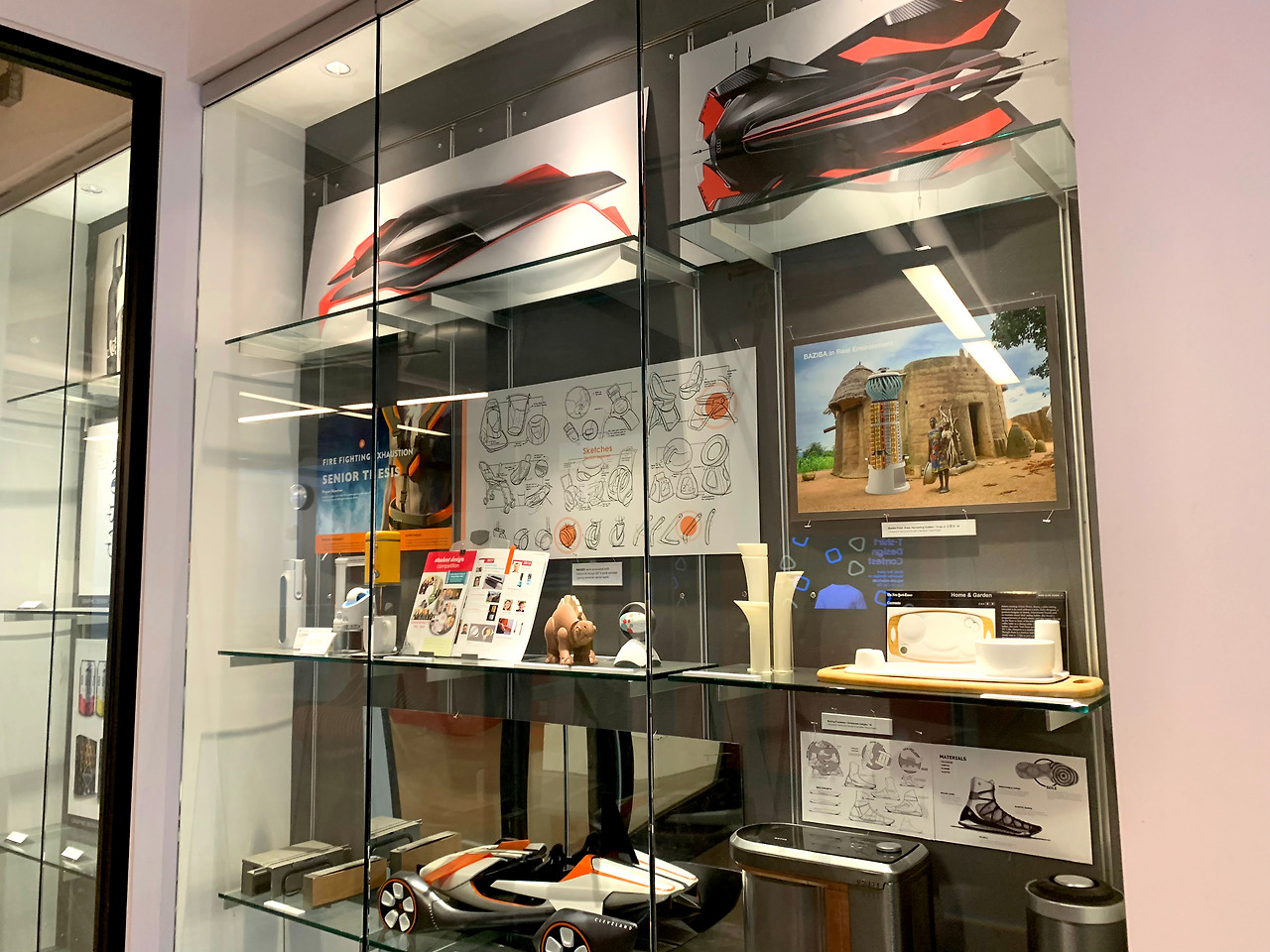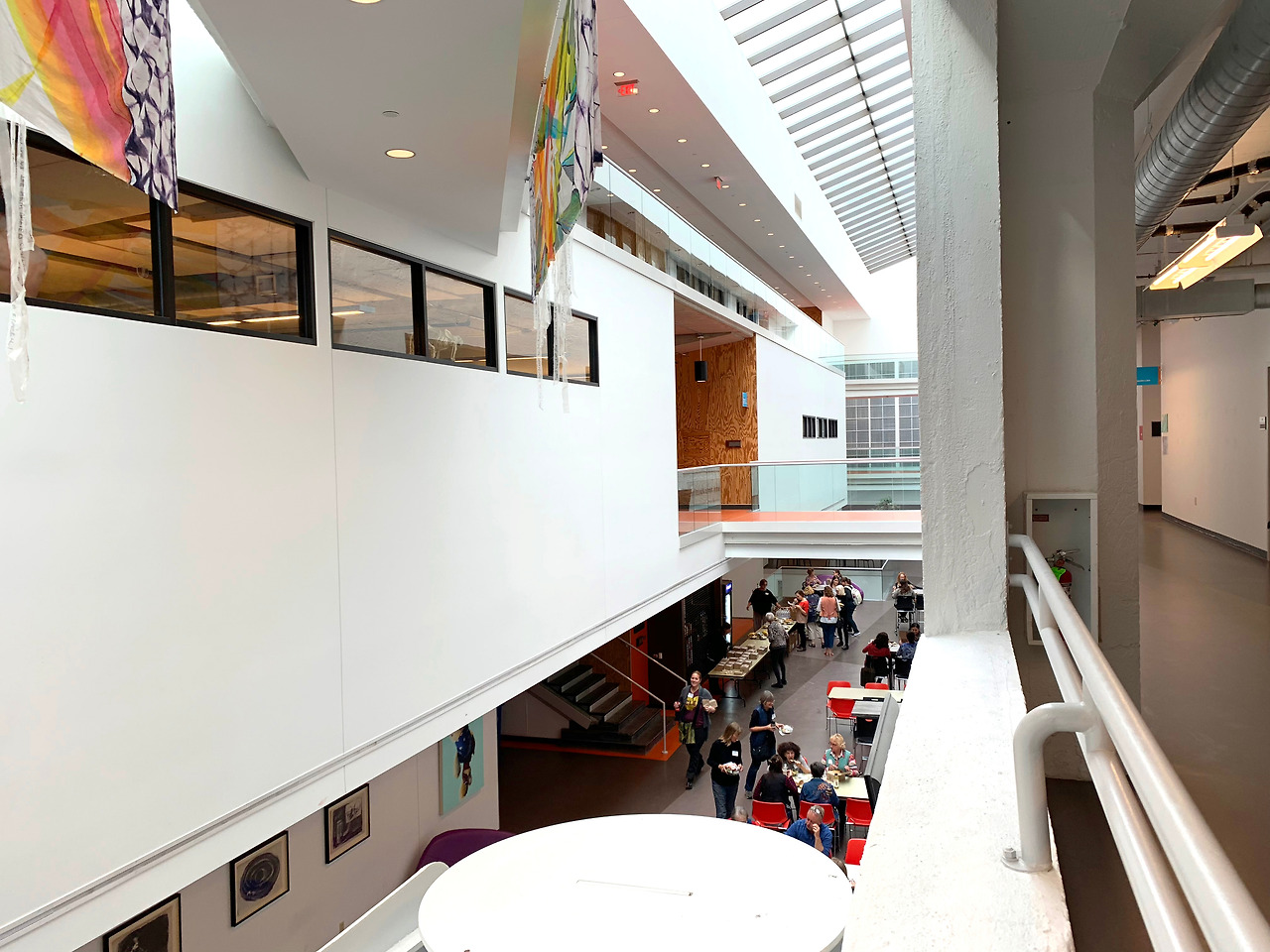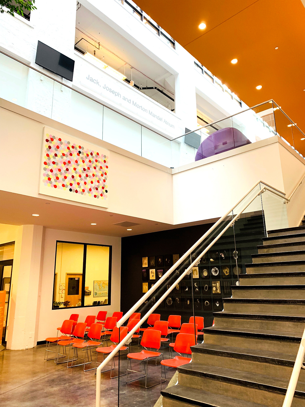 무채색의 공간에 오렌지로 포인트를 활용했다. 켄트 대학 건축과 건물과 비슷한 느낌이지만, 예술 & 디자인 학교답게 곳곳에 다양한 학생들의 작품이 전시되어 있어 훨씬 생기발랄한 인상을 주었다.