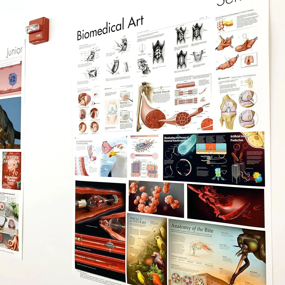 이 학교에서 가장 유명한 학과는 의학 분야의 이미지를 디자인하는 과라고 한다. 제2차 세계 대전 동안 지도 제작과 함께 커리큘럼에 추가되었다고 하는데, 한때 이 분야를 더 공부해볼까 하고 진지하게 고민했던 터라 다른 충보다 훨씬 더 흥미롭게 구경했다.