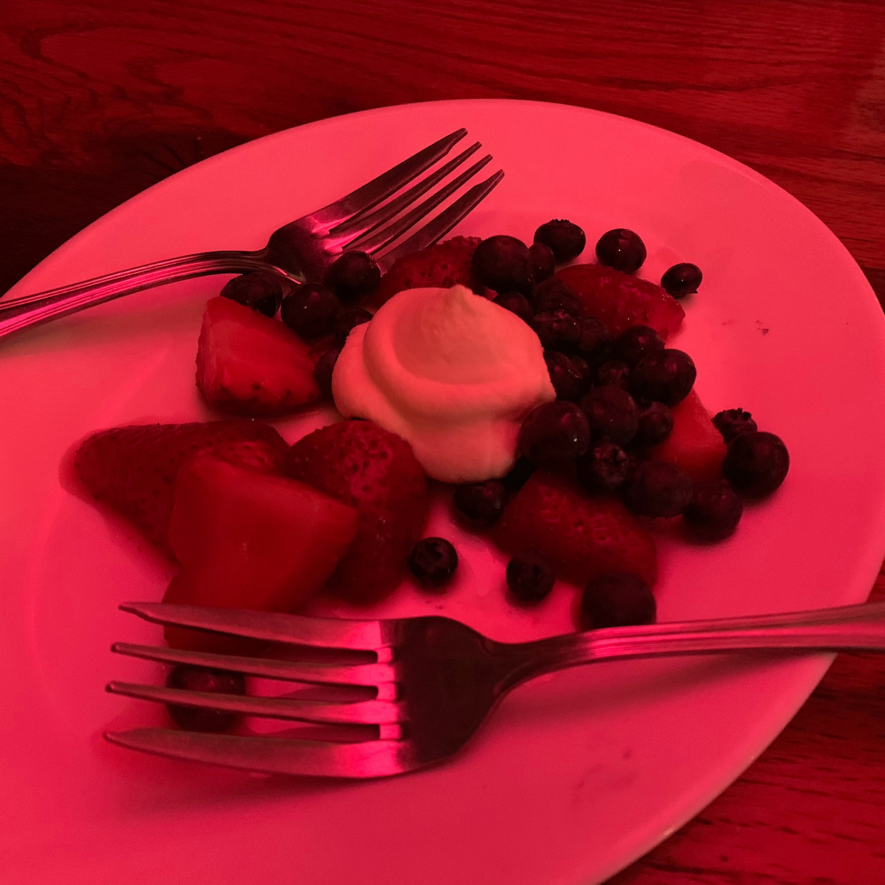 밤에 갔더니 정육점과 같은 색의 조명 덕분에 음식을 제대로 볼 순 없었지만, 소고기 구이는 훌륭했고, 추천 와인은 더 훌륭했다. 덕분에 한 잔이, 두 잔이 되고. 서비스로 주신 과일과 생크림이 너무 맛있어서 두 잔은 세 잔이 되었다.