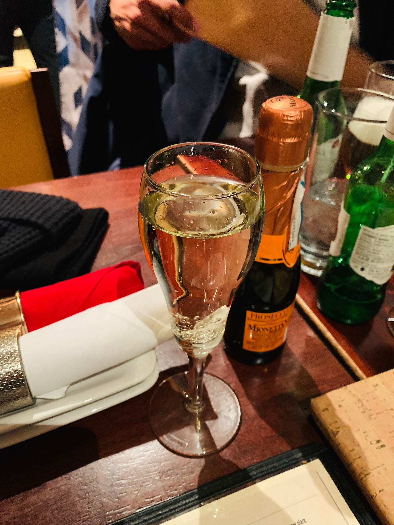 지난번에 갔을 때와 달리, 크리스마스 느낌이 물씬 났다. 작지만 편안한 분위기기 마음에 드는 레스토랑이다. 난 늦은 점심으로 스테이크를 먹었던 터라 스테이크는 생략하고 애피타이저와 디저트, 스파클링 와인을 즐기기로.