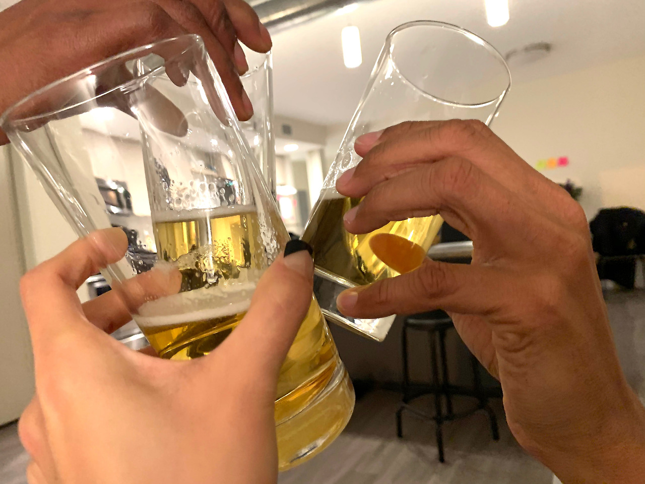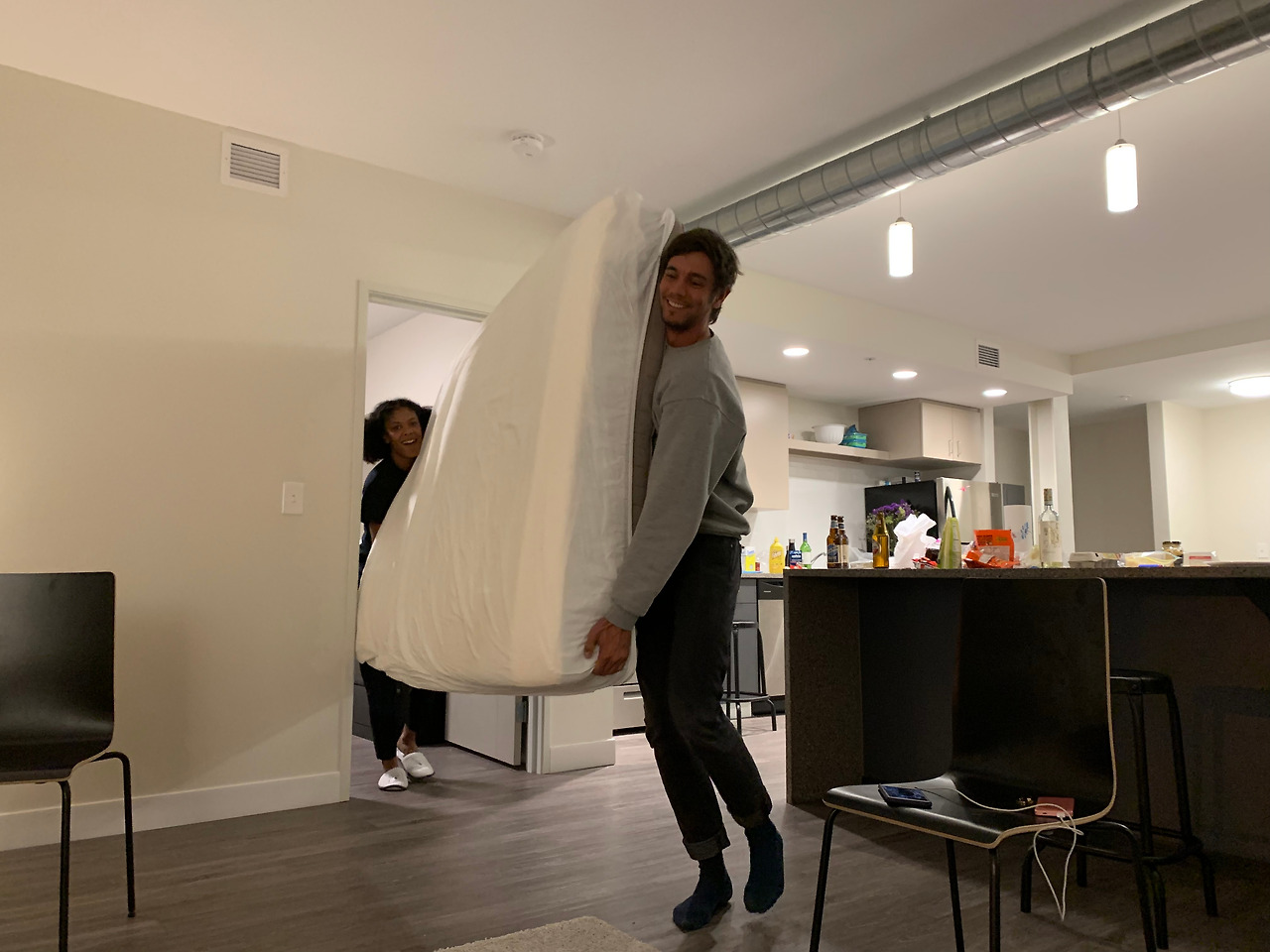 매트리스를 소파 앞에 놓고, 매트리스에 앉아 소파에 기대고 쿠션을 목에 대니 높이가 딱 좋다! 이제 일어나지 않고, 기댄 채로 맥주를 마실 수 있다ㅋㅋ 우리 셋은 너무 만족스러워하며, 그동안 클리블랜드에서 있었던 일, 서로가 얼마나 힘이 되었고, 얼마나 그리울지에 대해 이야기를 나누며 (중간중간 졸고 있는 서로를 깨우며) 마지막 시간을 보냈다.