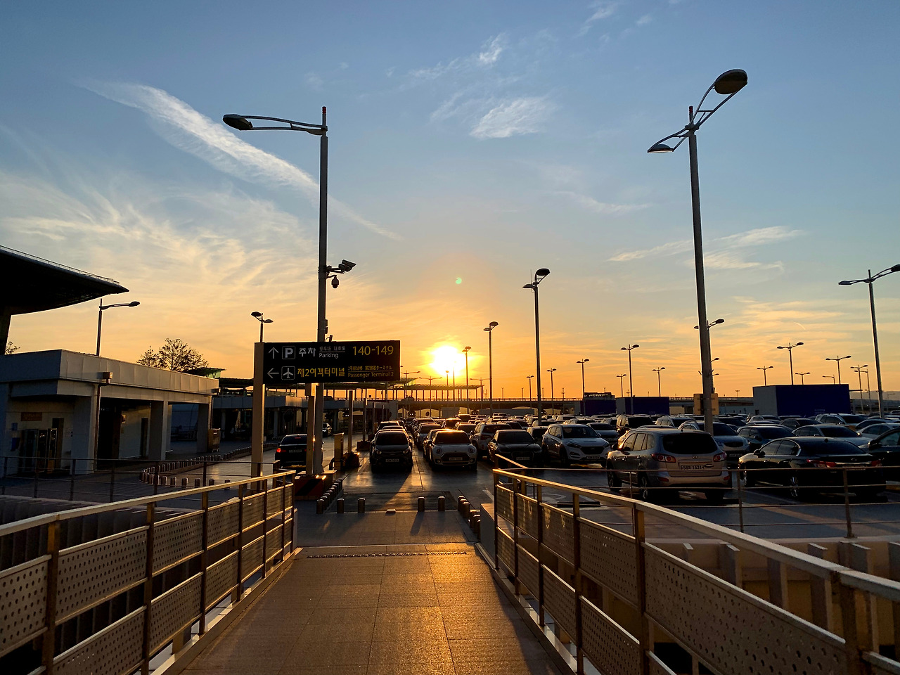인천 공항에 도착하니, 노을이 예술이다! 이게 얼마 만에 본 노을인지.