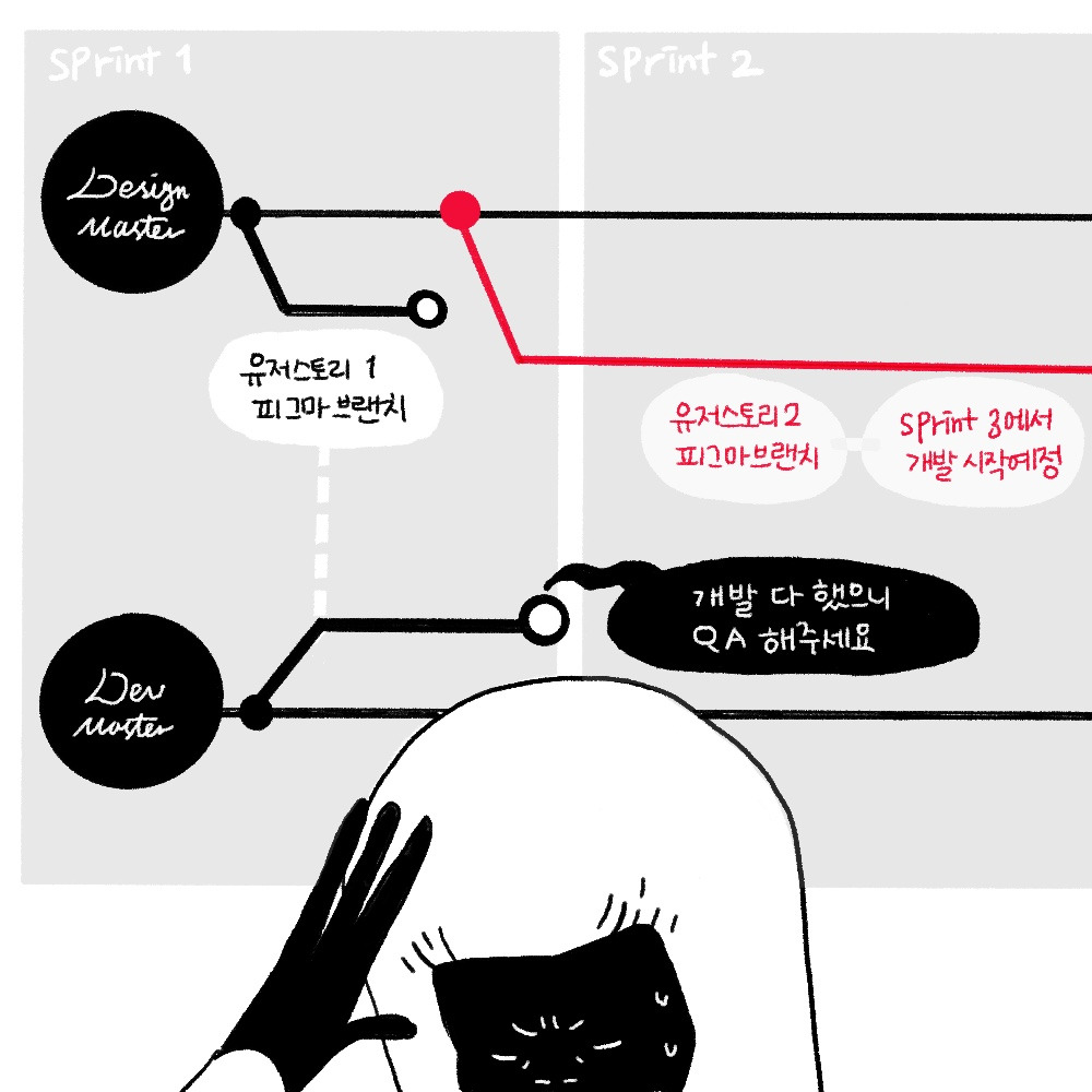 8. 스프린트 종료 후 개발 코드와 디자인 파일은 동시에 마스터 파일에 Merge 한다.
