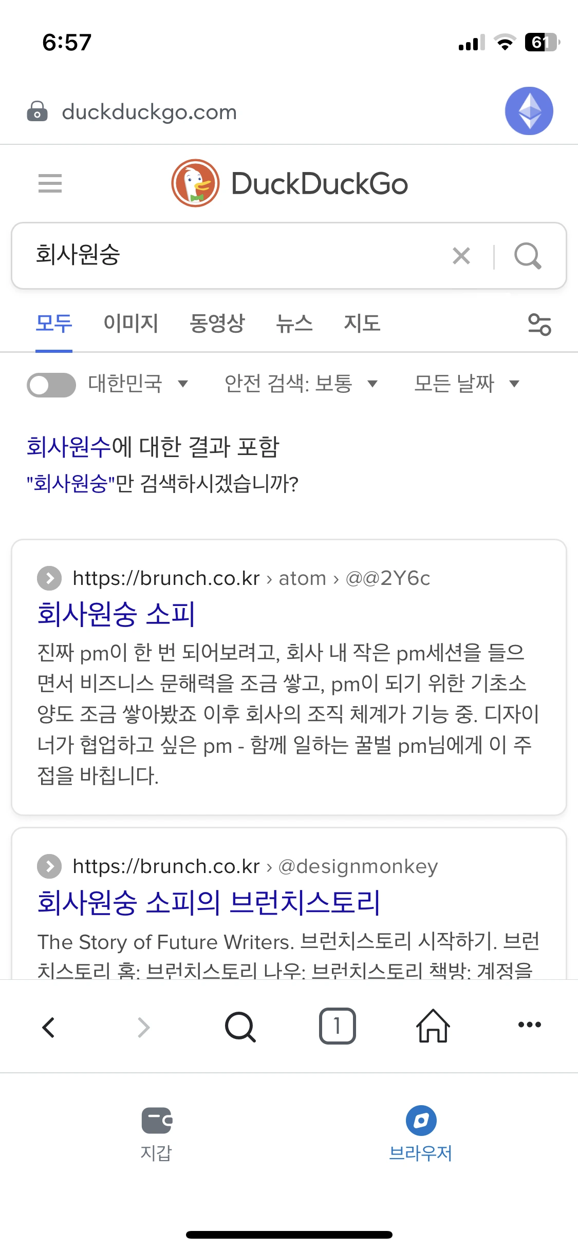 핸드폰에 설정된 기본 브라우저 앱을 말해요. 아이폰은 주로 safari로 설정되어 있고, 크롬을 쓰시는 분들도 많죠. 기본브라우저로 연결하면 사용자는 앱을 벗어나게 됩니다. 그래서 UX가 뚝 끊어질 수밖에 없어요. 개발 구현이 제일 쉬운 방법이지만, UX를 책임지는 프로덕트 디자이너 입장에선 많이 고민하고 결정해야 하는 방법입니다.