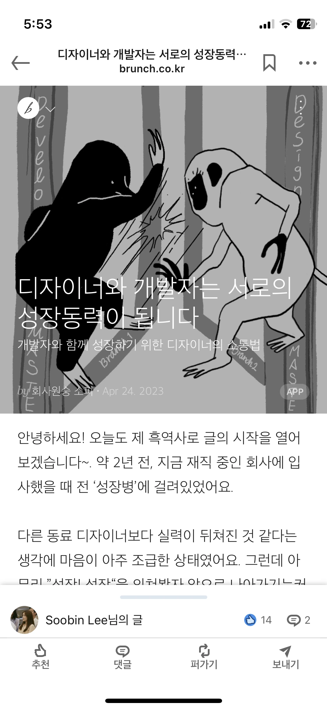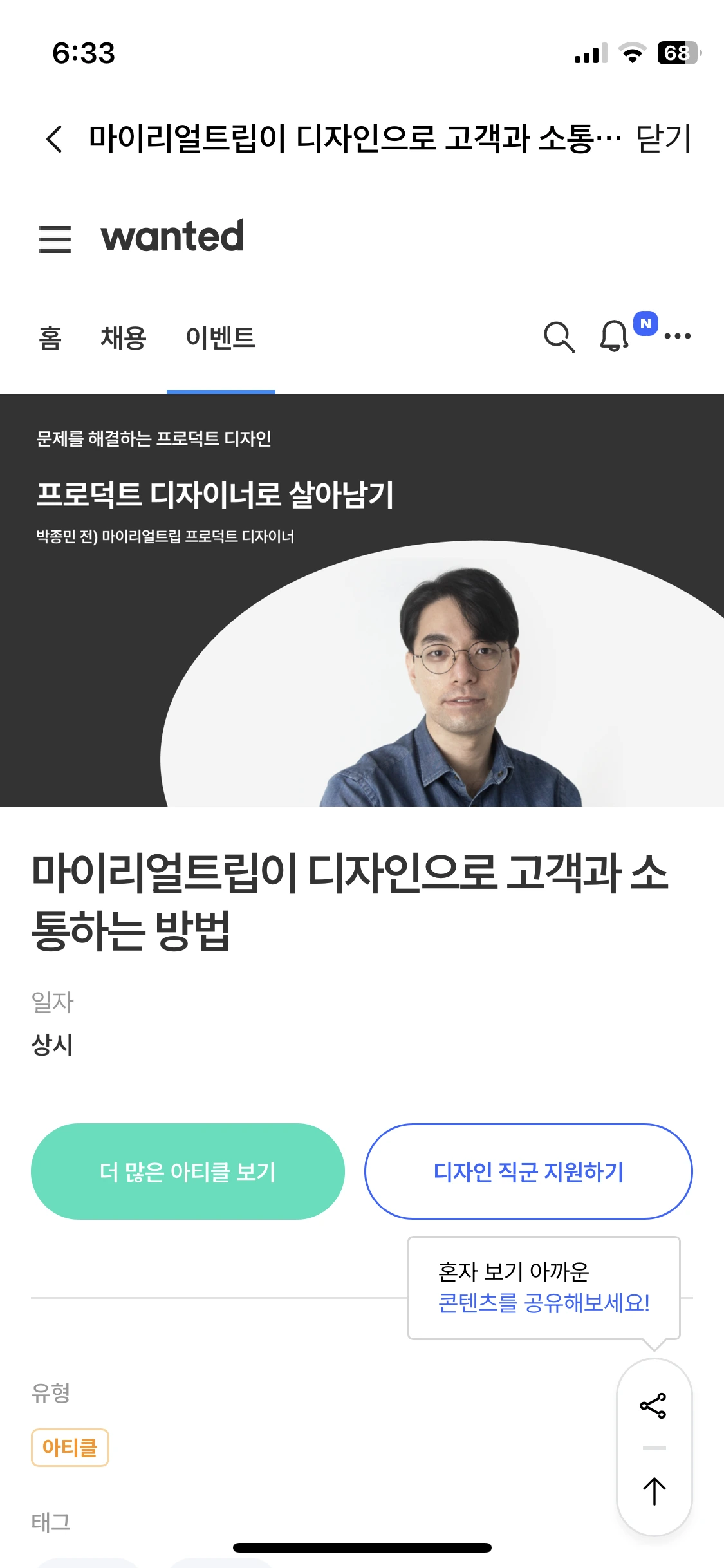 이번 글은 디자이너가 찍먹 하기 좋은 앱 내 웹뷰에 대해 정리해 보았는데요, 이 글을 통해 개발자와의 미팅에서 적극적으로 의견을 말할 수 있는 힘이 생기시기를 응원하며 썼습니다.