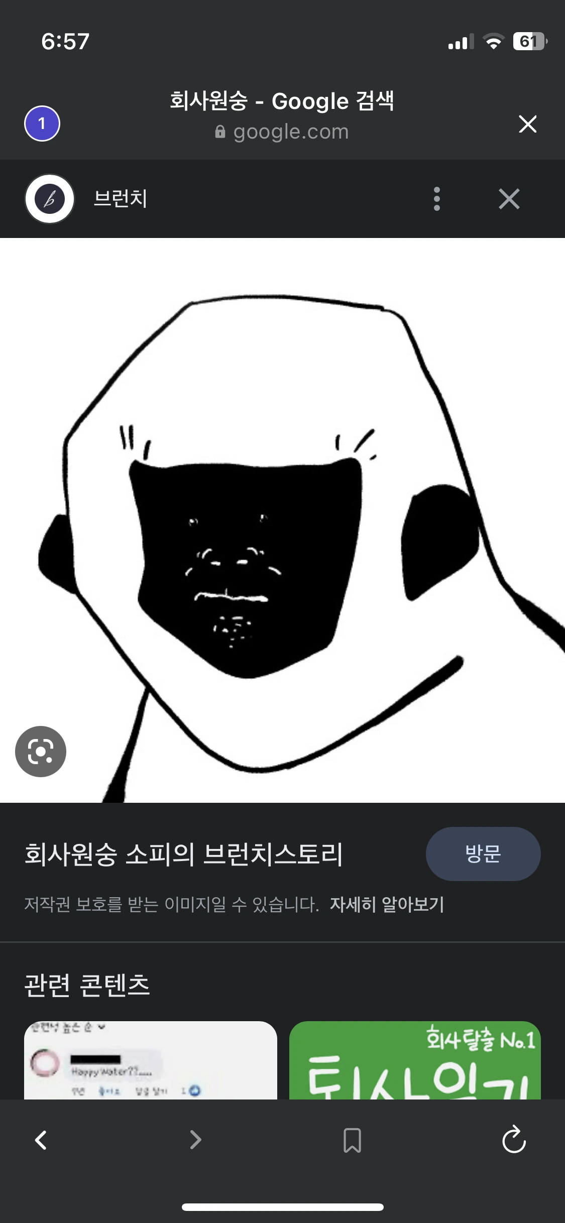 위에서 설명한 웹뷰와 마찬가지로, 상단 앱바에 브라우저 창을 끄기 위한 CTA가 있습니다 하지만 인앱브라우저의 경우 앱바에 ⬅️버튼과 페이지 Back이 혼동되는 경우가 있을 수 있기 때문에 주로 X버튼을 활용하는 것 같아요.