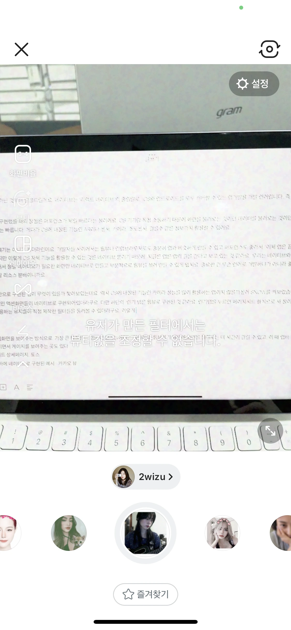 이해를 돕기 위해 네이티브만으로 구현된 앱이 무엇이 있을까 찾아보았는데요, 역시 OS에 내장된 기능인 카메라 성능을 많이 활용하는 앱이지 않을까 싶어 SNOW를 켜보았습니다.
