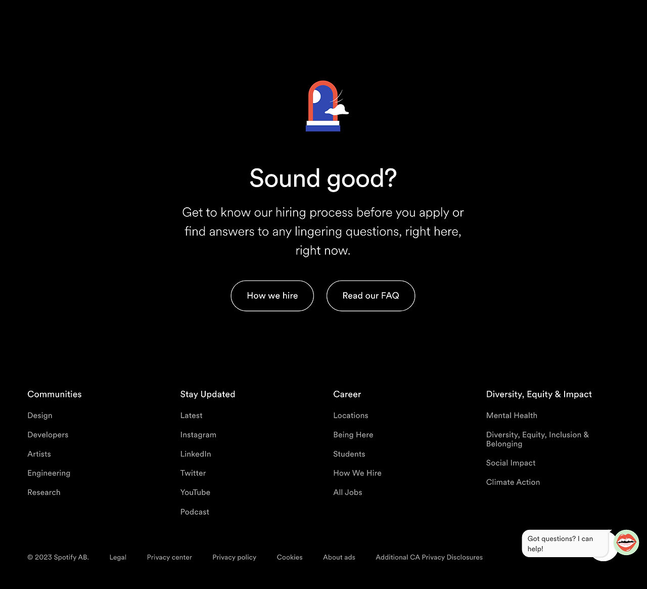 이 페이지에서 푸터는 스포티파이라는 회사에 대해서 이야기하고 있어요.