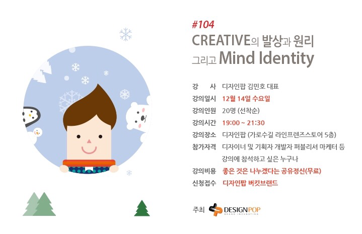 혹시 관심이 있는 분이 계시다면 디자인팝 웹사이트 (http://www.designpop.co.kr)나 제 페이스북 (https://www.facebook.com/dpopceo)에 방문하시면 강의 일정과 관련 정보를 확인하실 수 있습니다.