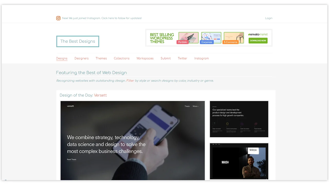아름답고 현대적인 웹 사이트를 선별한 갤러리로 특별히 웹 개발자와 디자이너에게 영감을 주는 사이트이다.