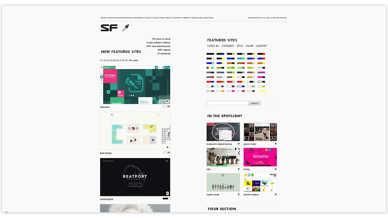 역시 실무 디자이너들은 모두 알만한 사이트로 세계의 웹사이트 중 최고의 웹디자인을 선정해서 수상하는 사이트이다. 또한 전 세계의 디자이너들이 자신들의 디자인을 업데이트하고 서로 피드백을 주고받는 만큼 수준 높은 퀄리티를 자랑한다.
