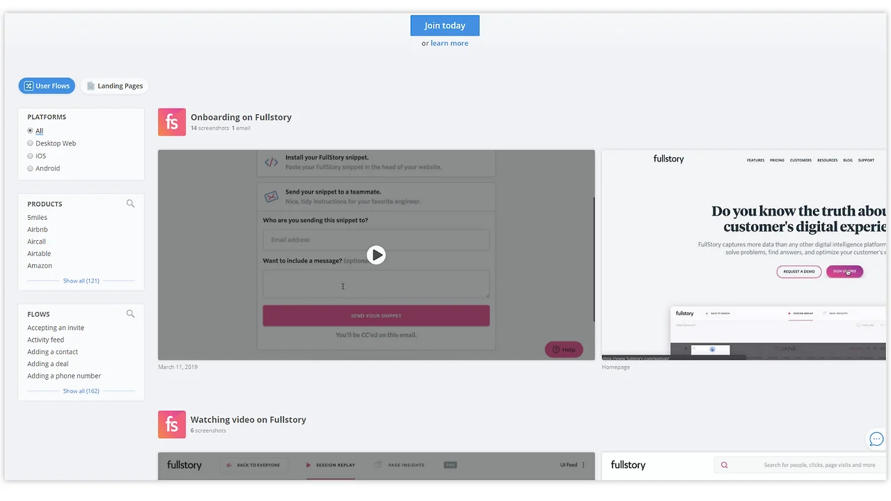 사용자 흐름 동영상 및 캡처 화면으로 UX/UI 영감을 얻을 수 있는 사이트이며 화면 흐름(사용자 플로우 패턴) 설계 시 유용하게 참고할 수 있다.